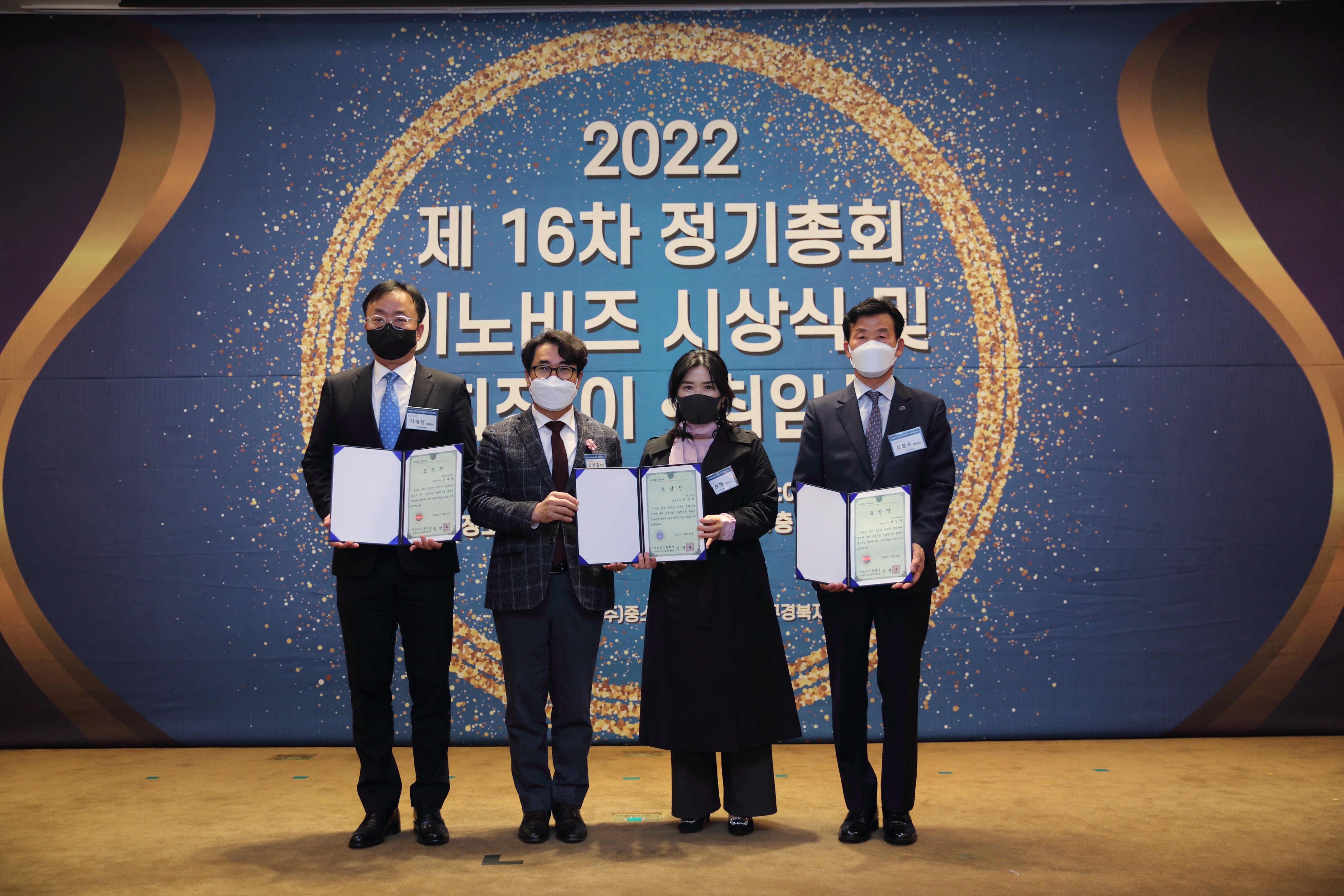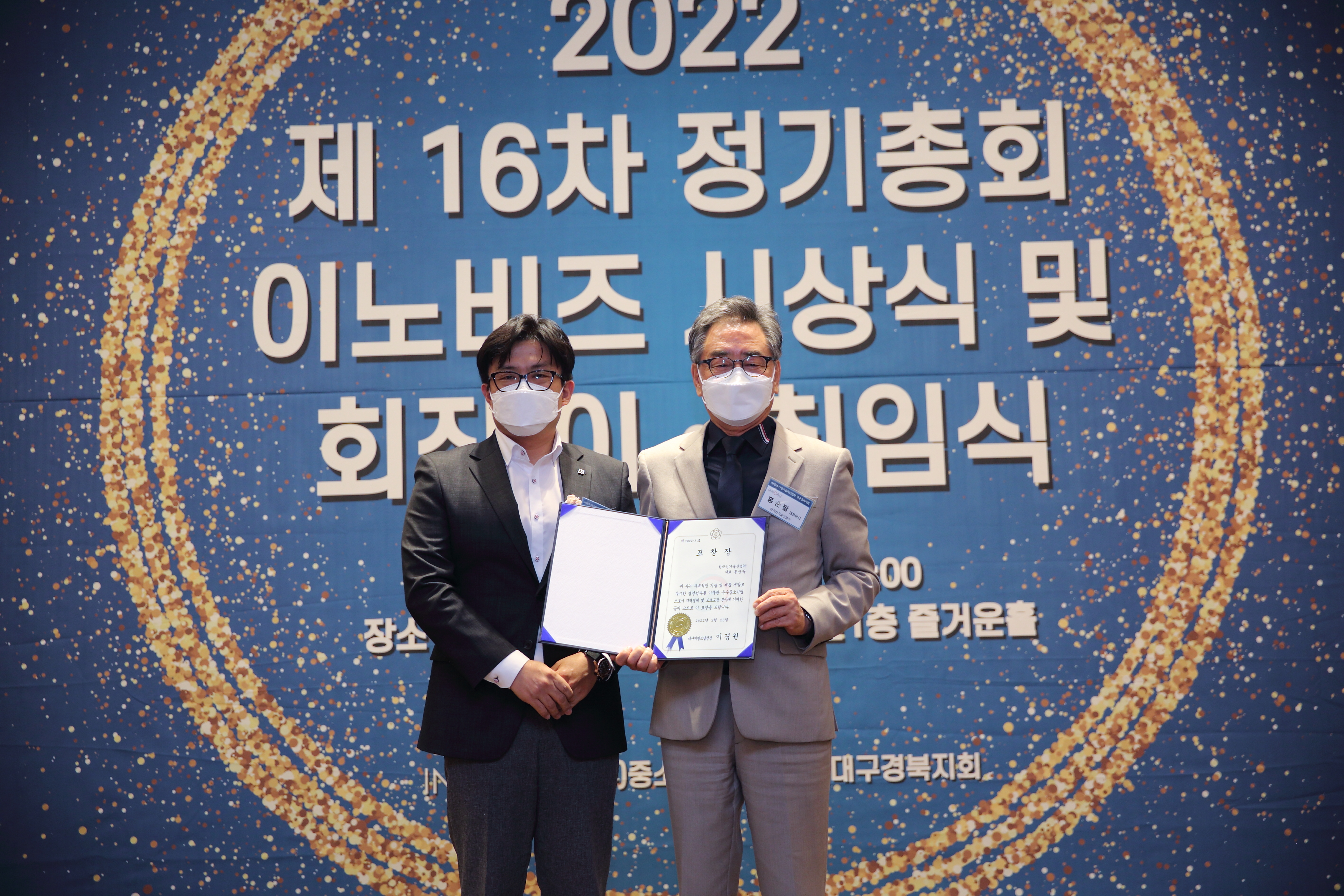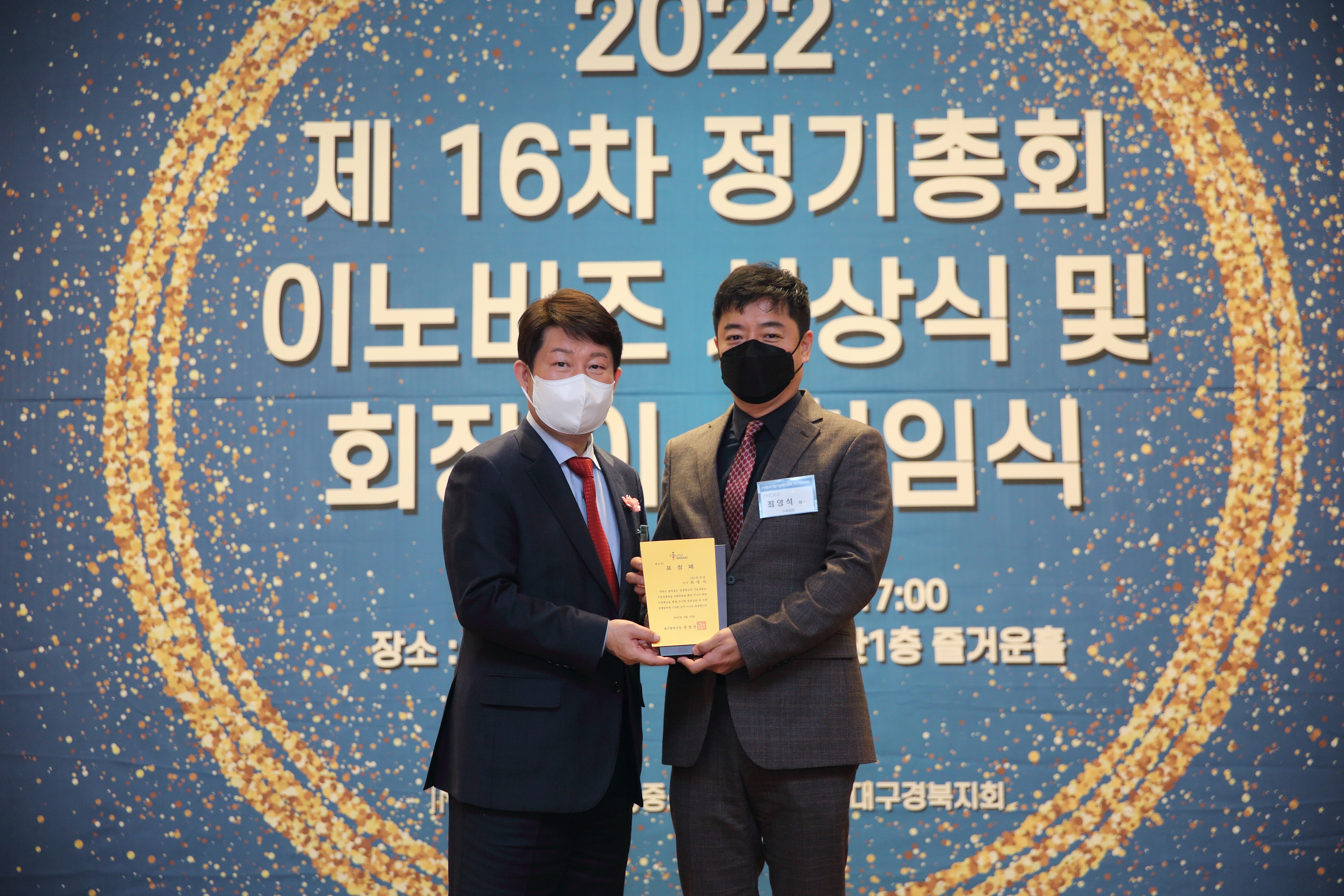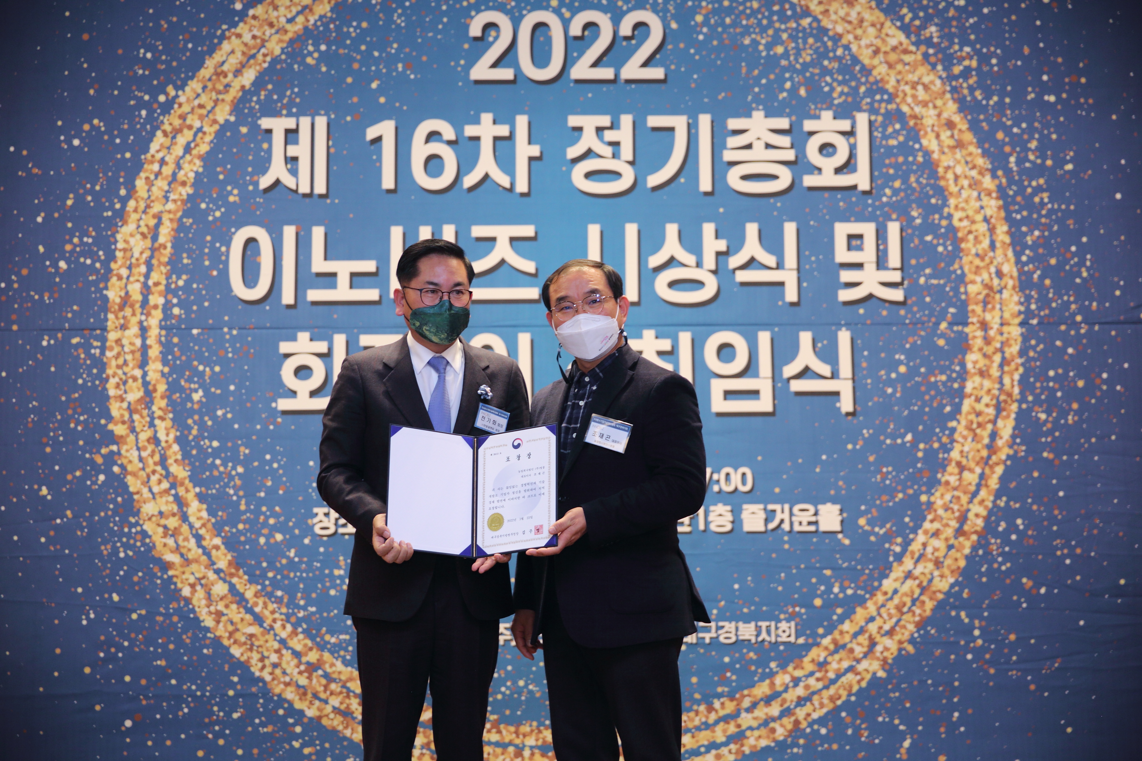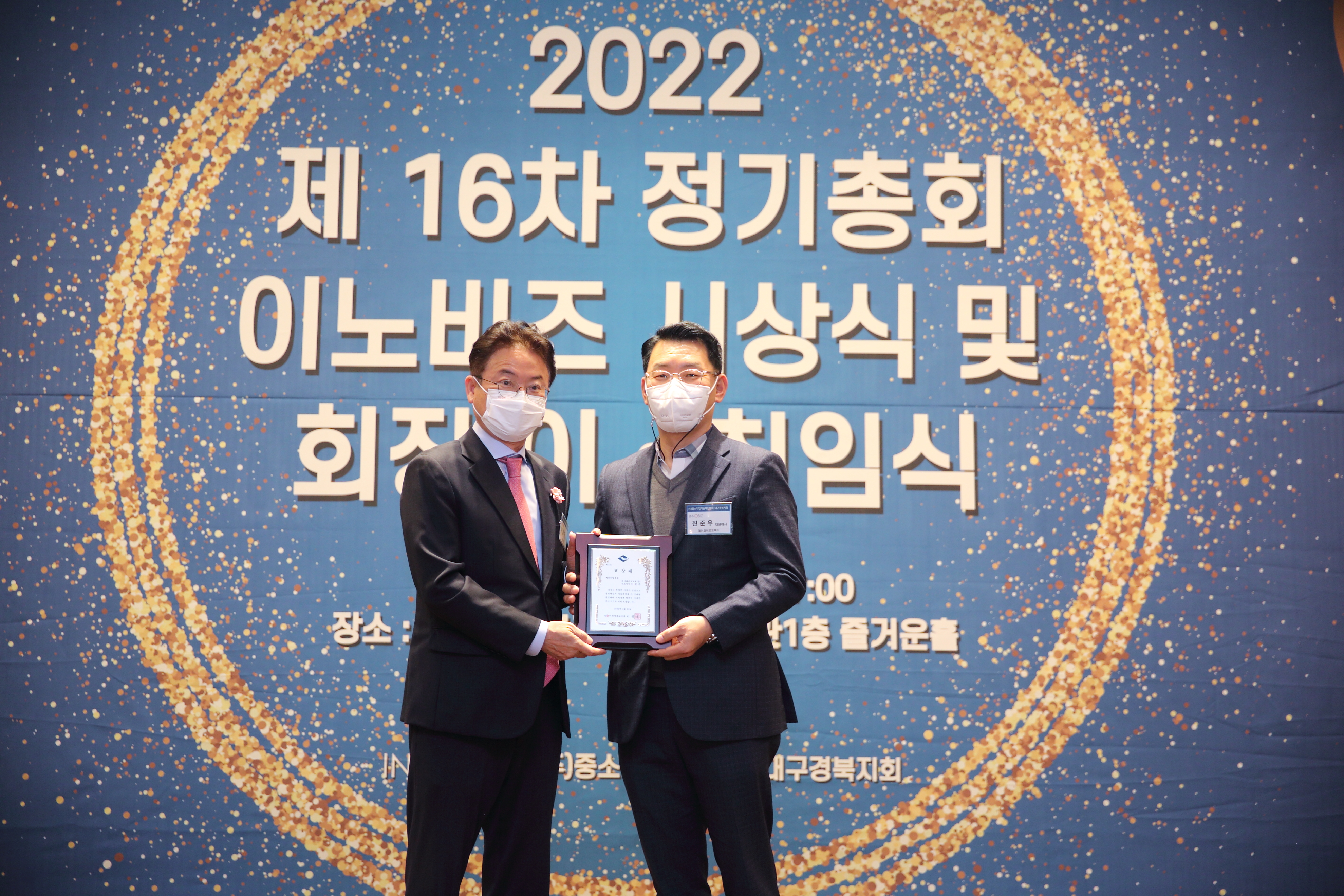 2022. 03. 23.(수) 대구인터불고호텔 즐거운홀에서 이노비즈협회 대구경북지회 제16차 정기총회, 우수이노비즈기업 시상식 및 회장 이·취임식을 진행 하였습니다.