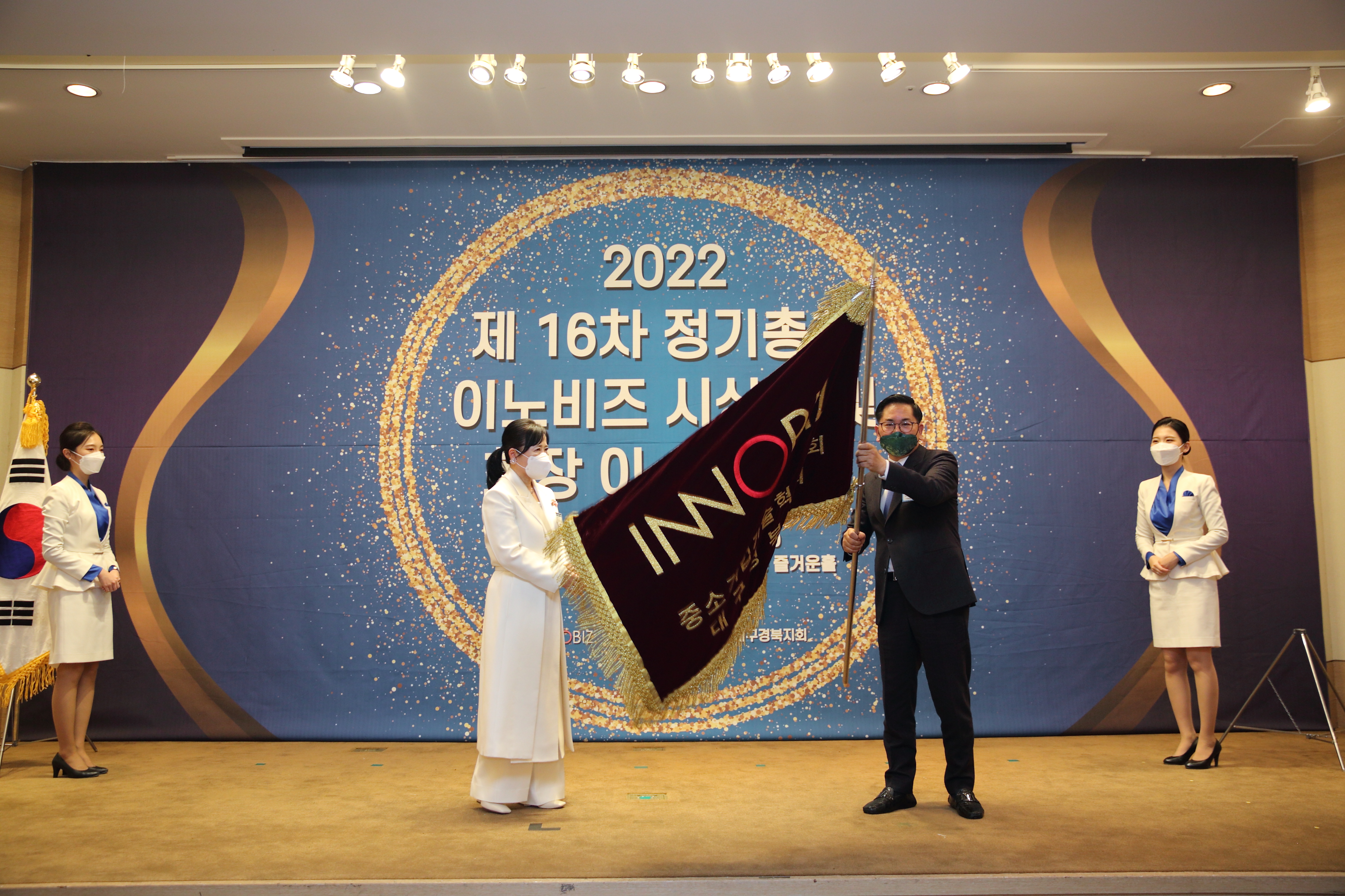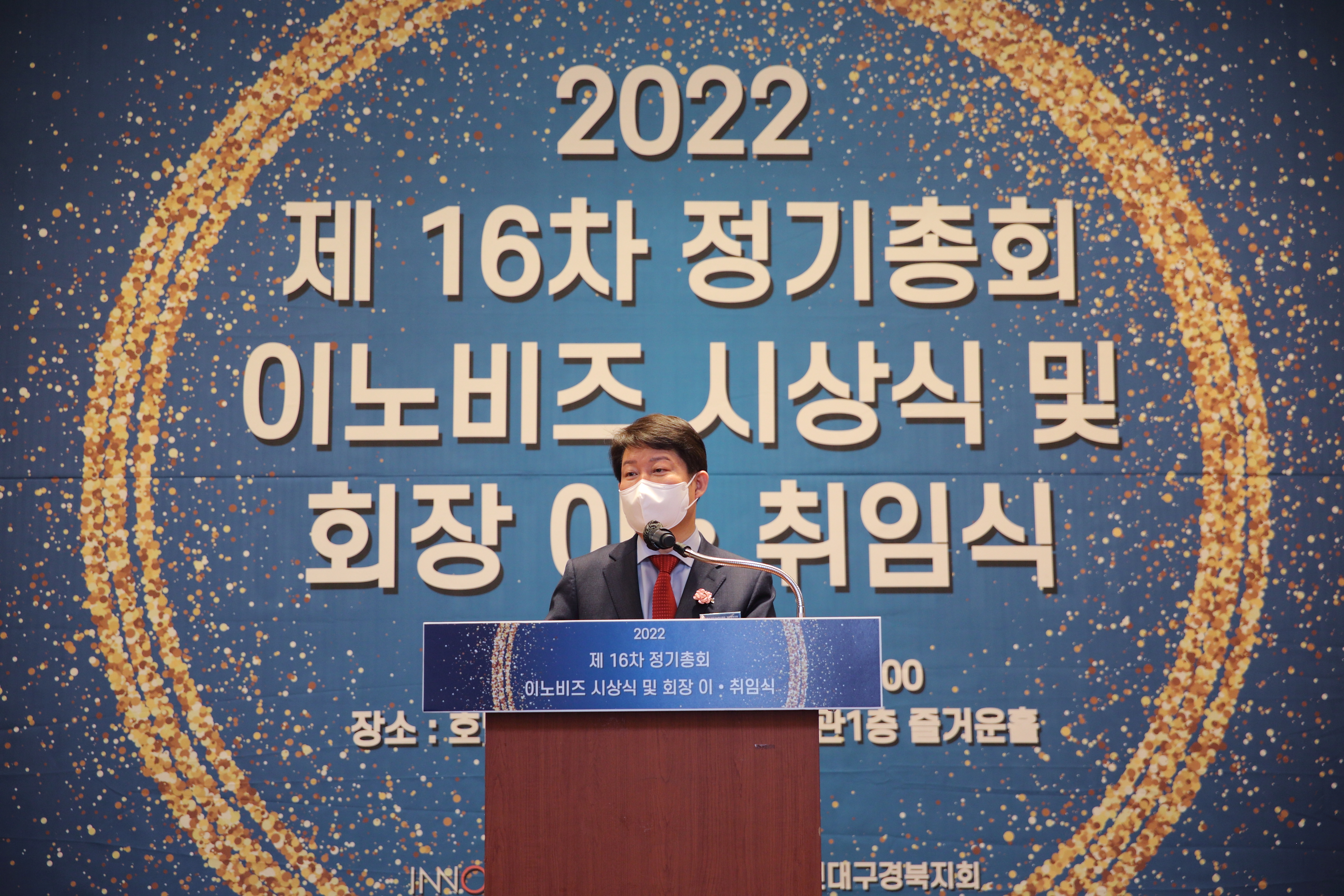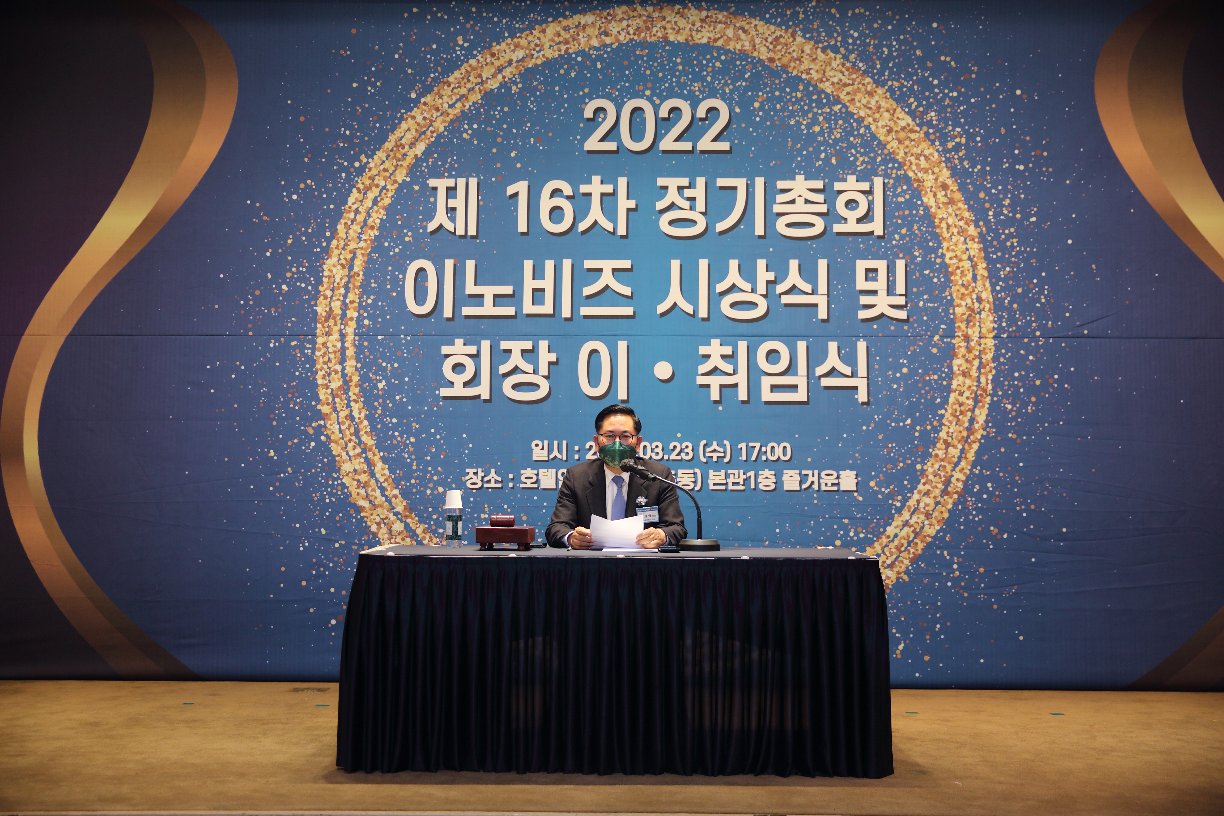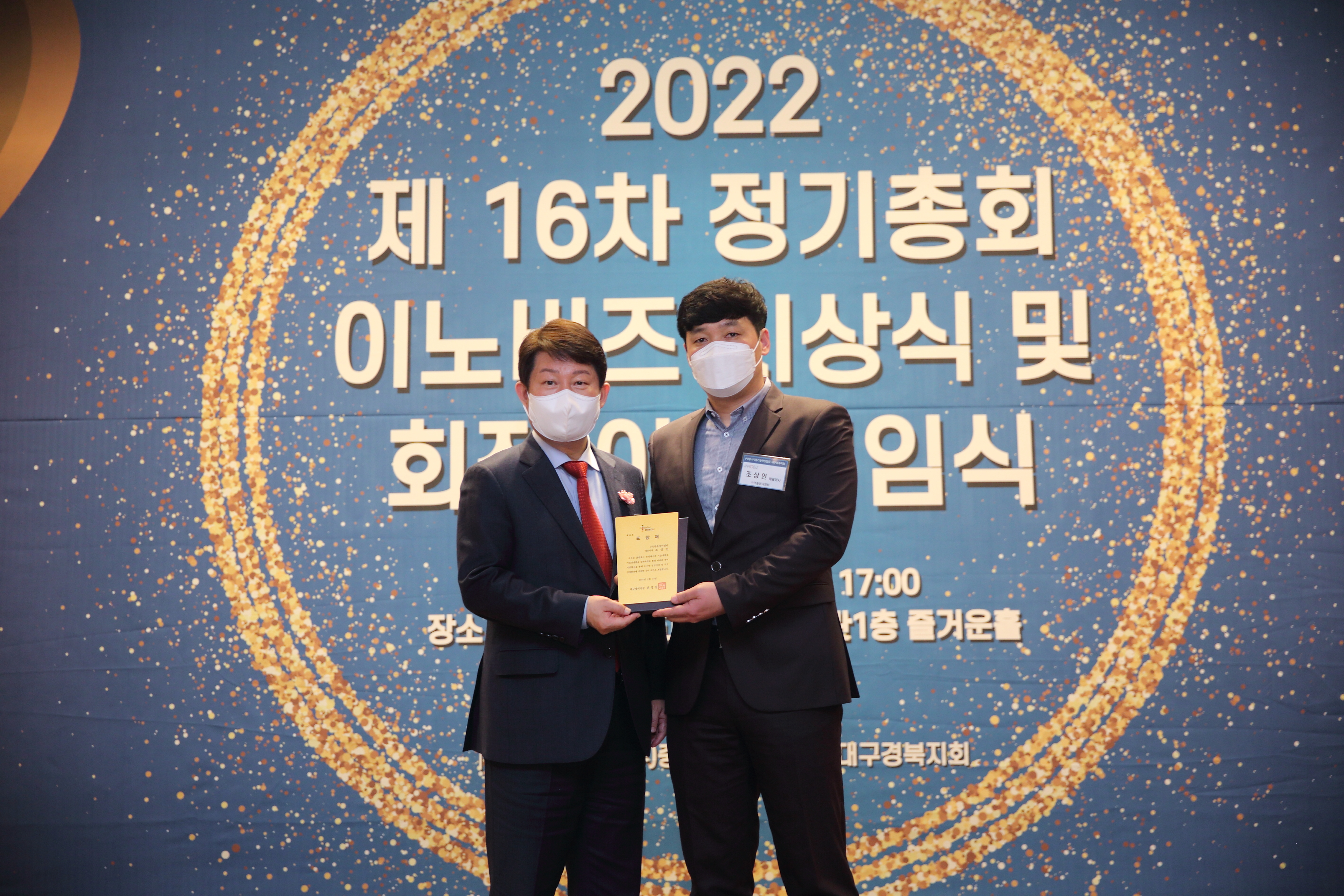 2022. 03. 23.(수) 대구인터불고호텔 즐거운홀에서 이노비즈협회 대구경북지회 제16차 정기총회, 우수이노비즈기업 시상식 및 회장 이·취임식을 진행 하였습니다.