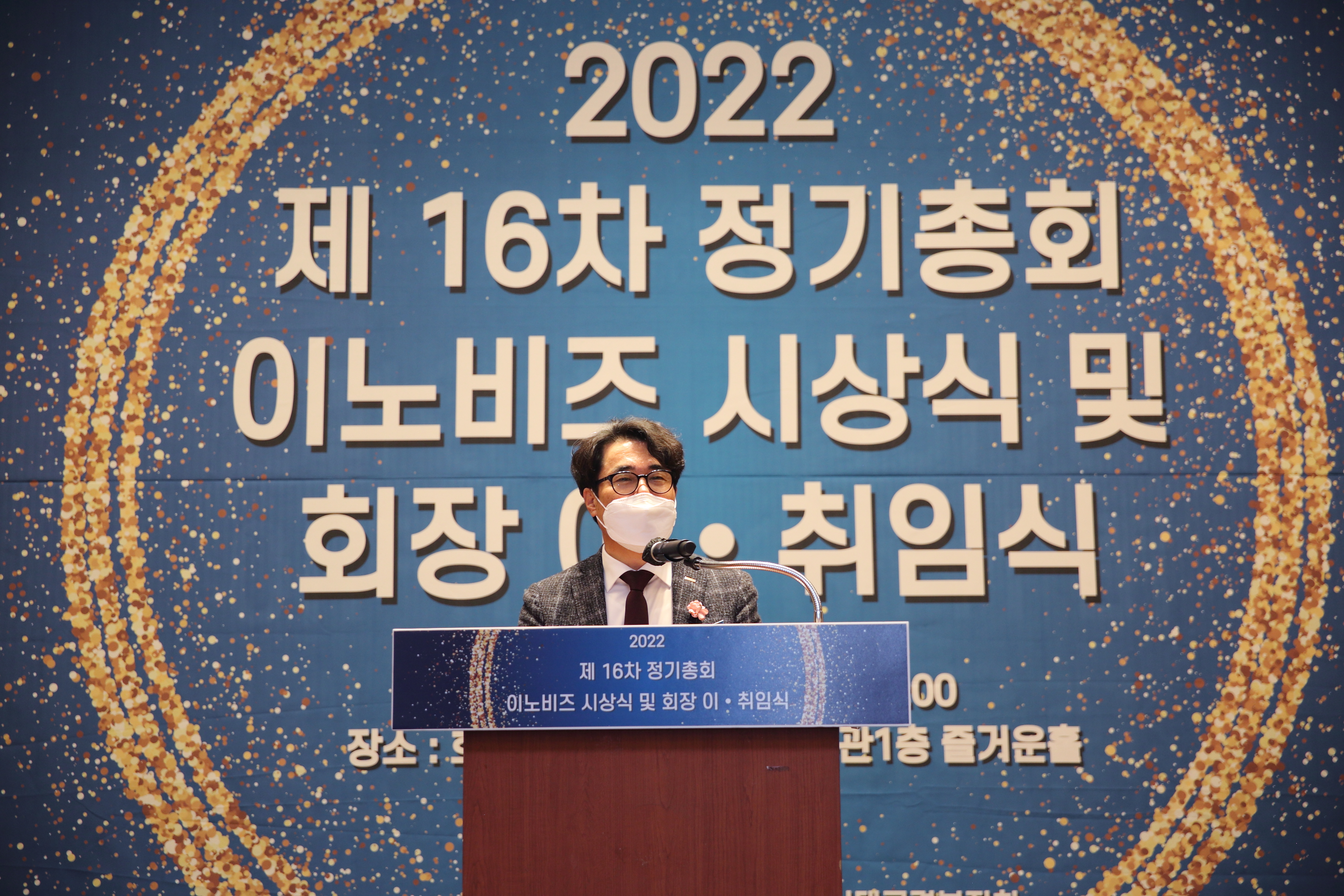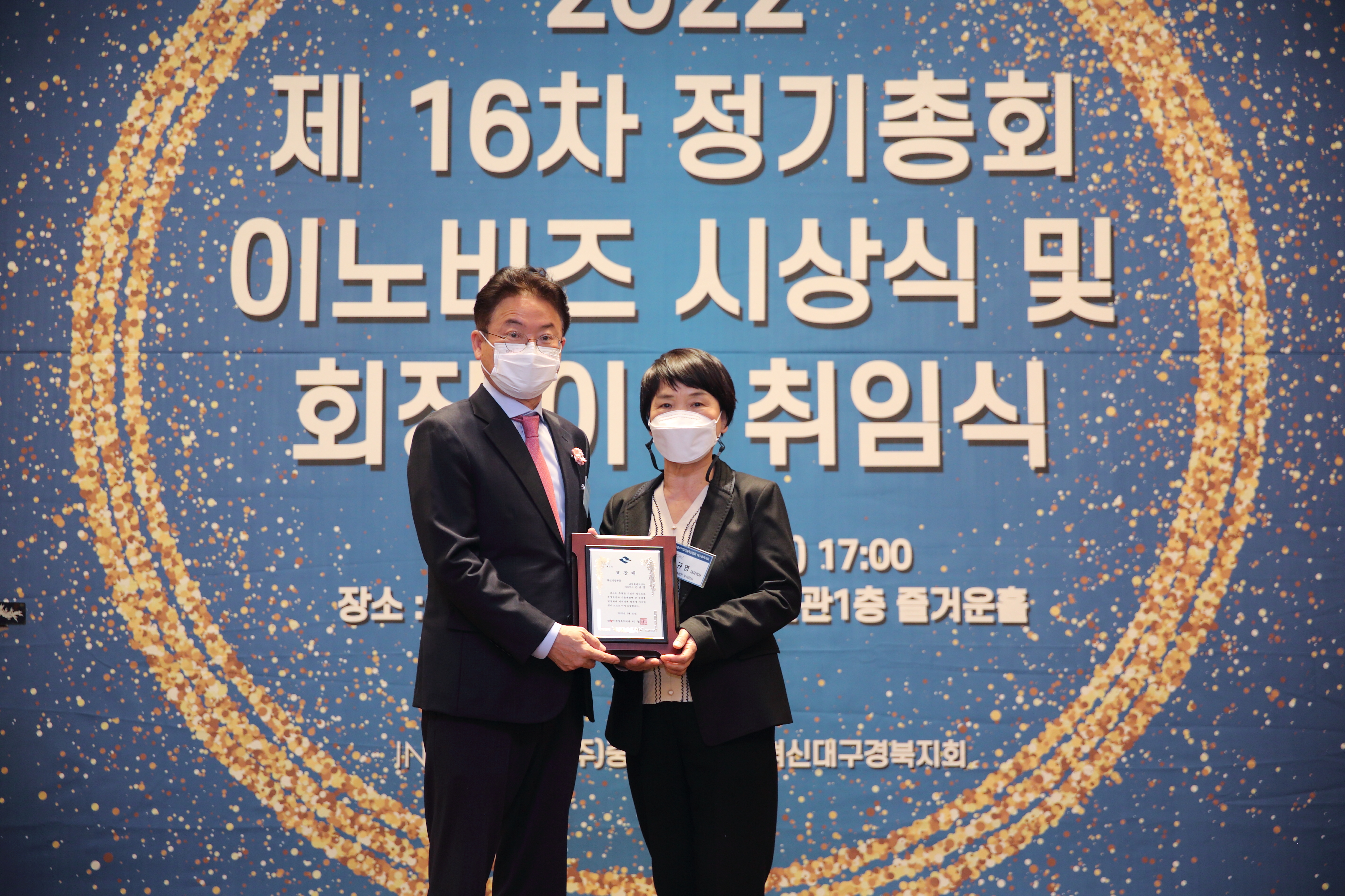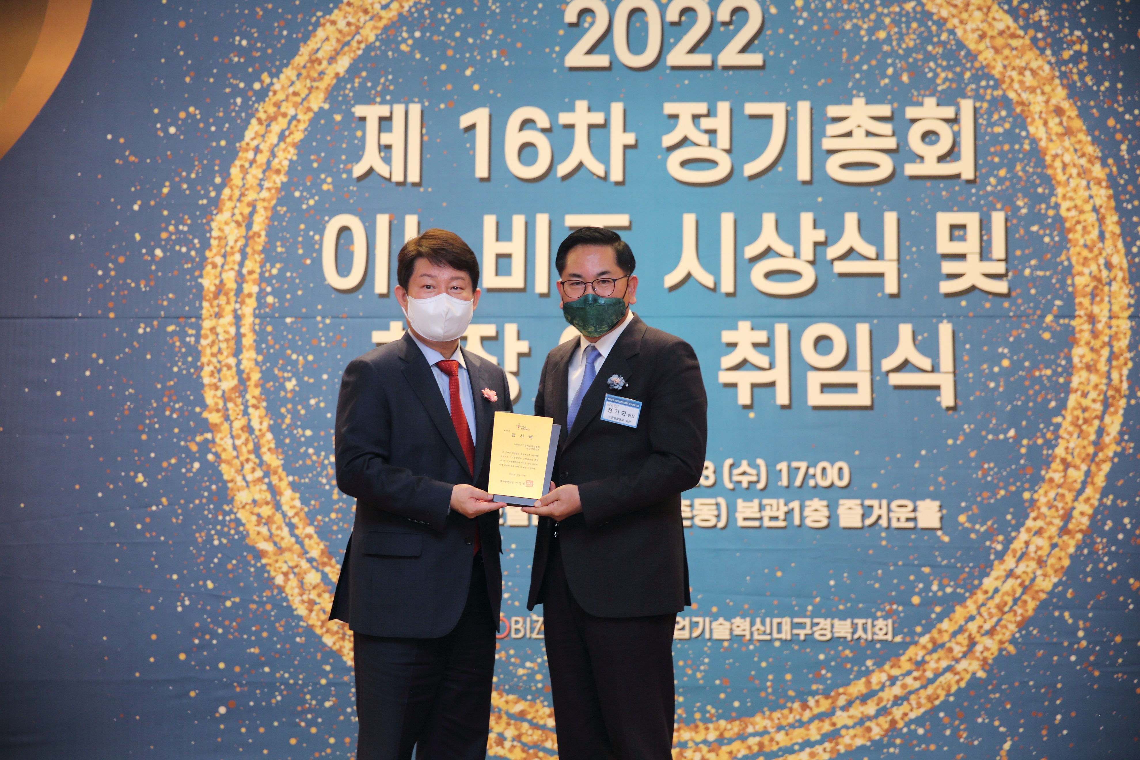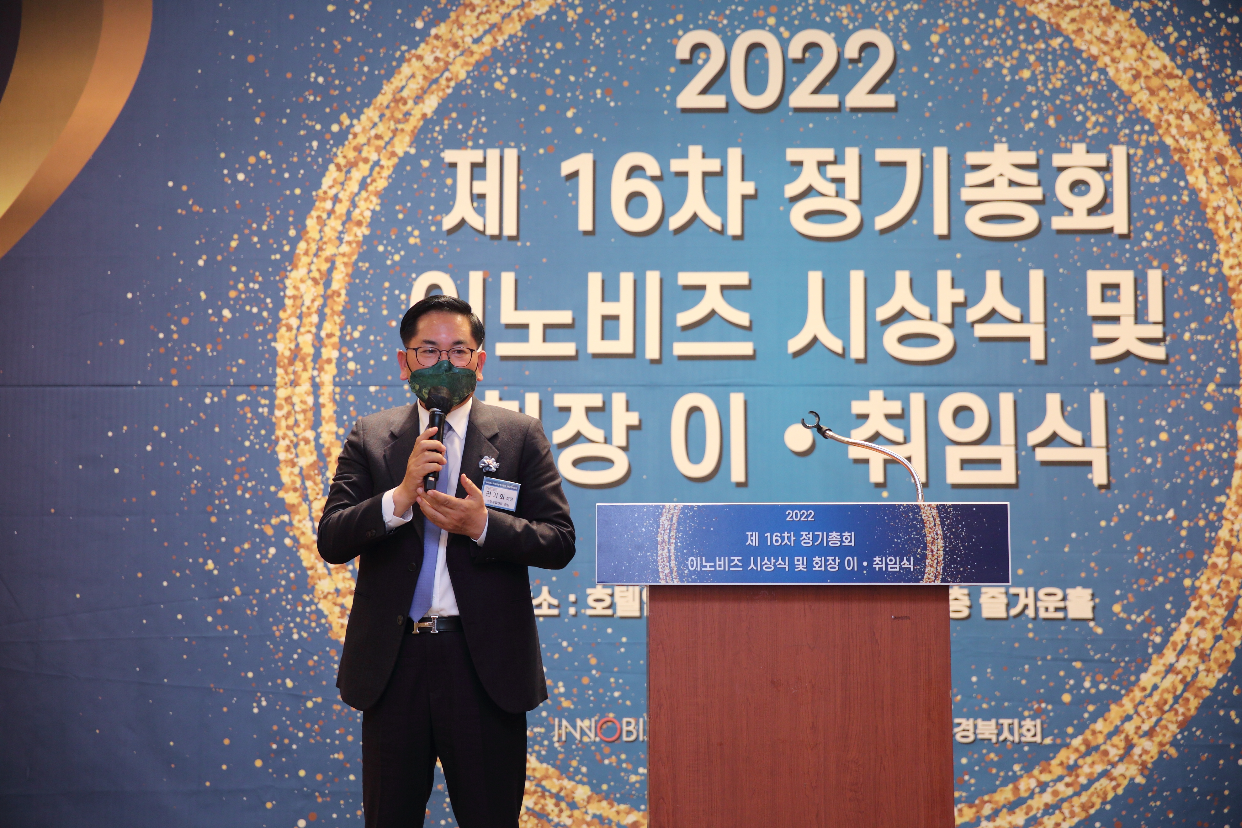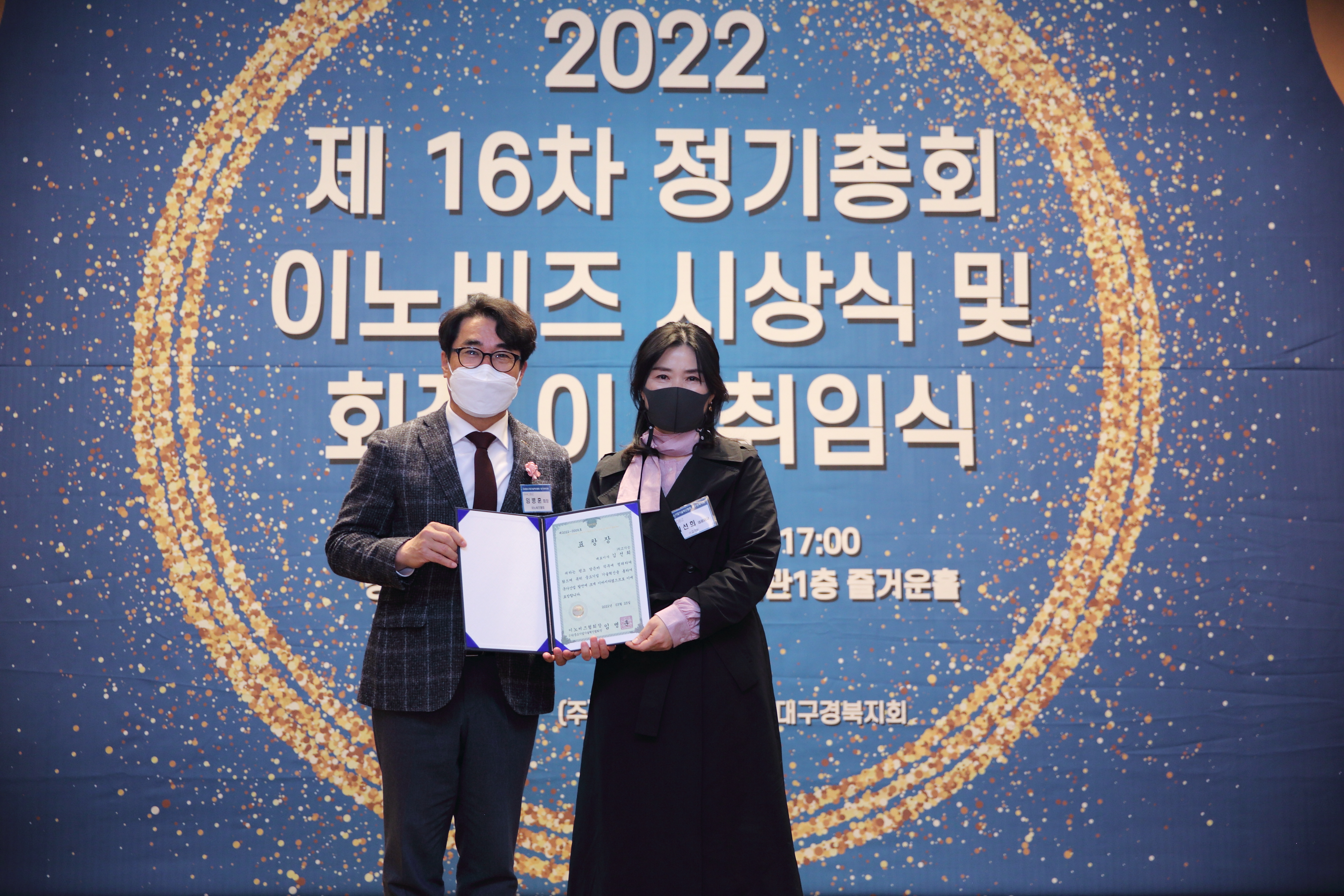 2022. 03. 23.(수) 대구인터불고호텔 즐거운홀에서 이노비즈협회 대구경북지회 제16차 정기총회, 우수이노비즈기업 시상식 및 회장 이·취임식을 진행 하였습니다.