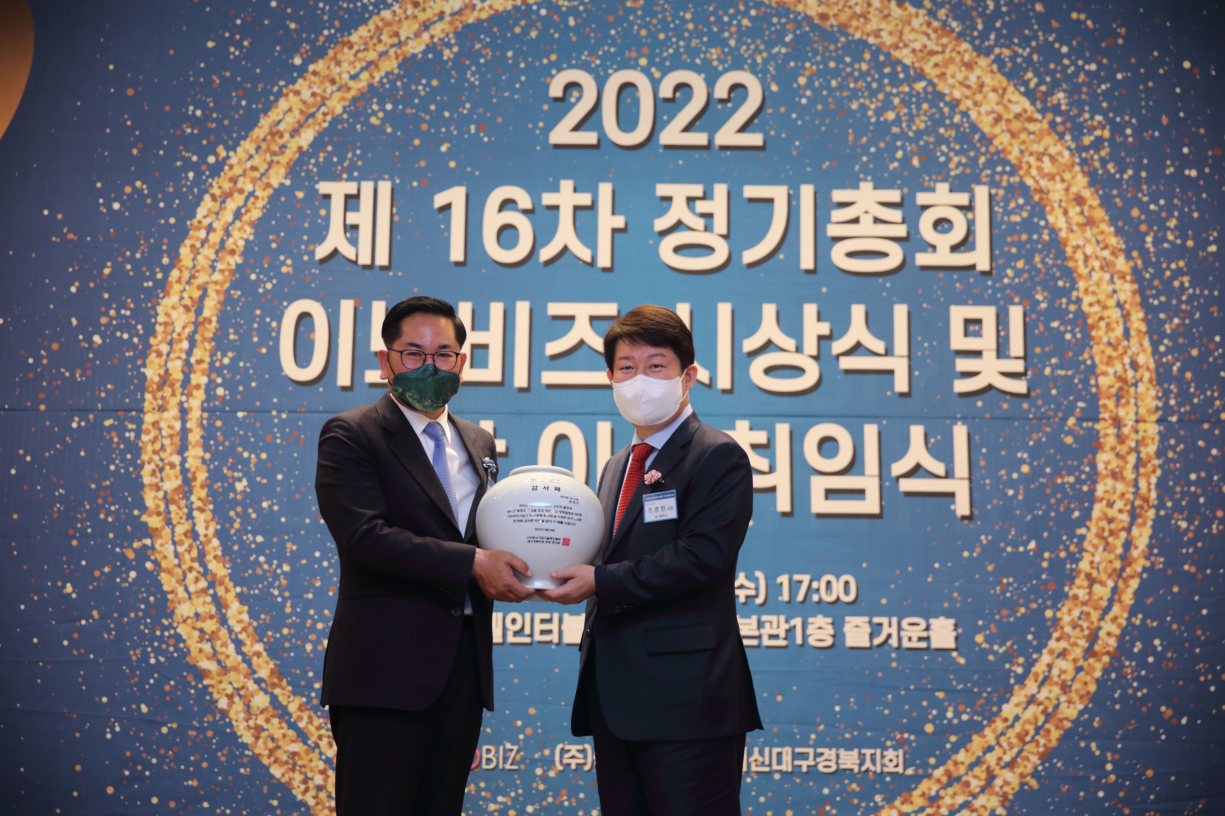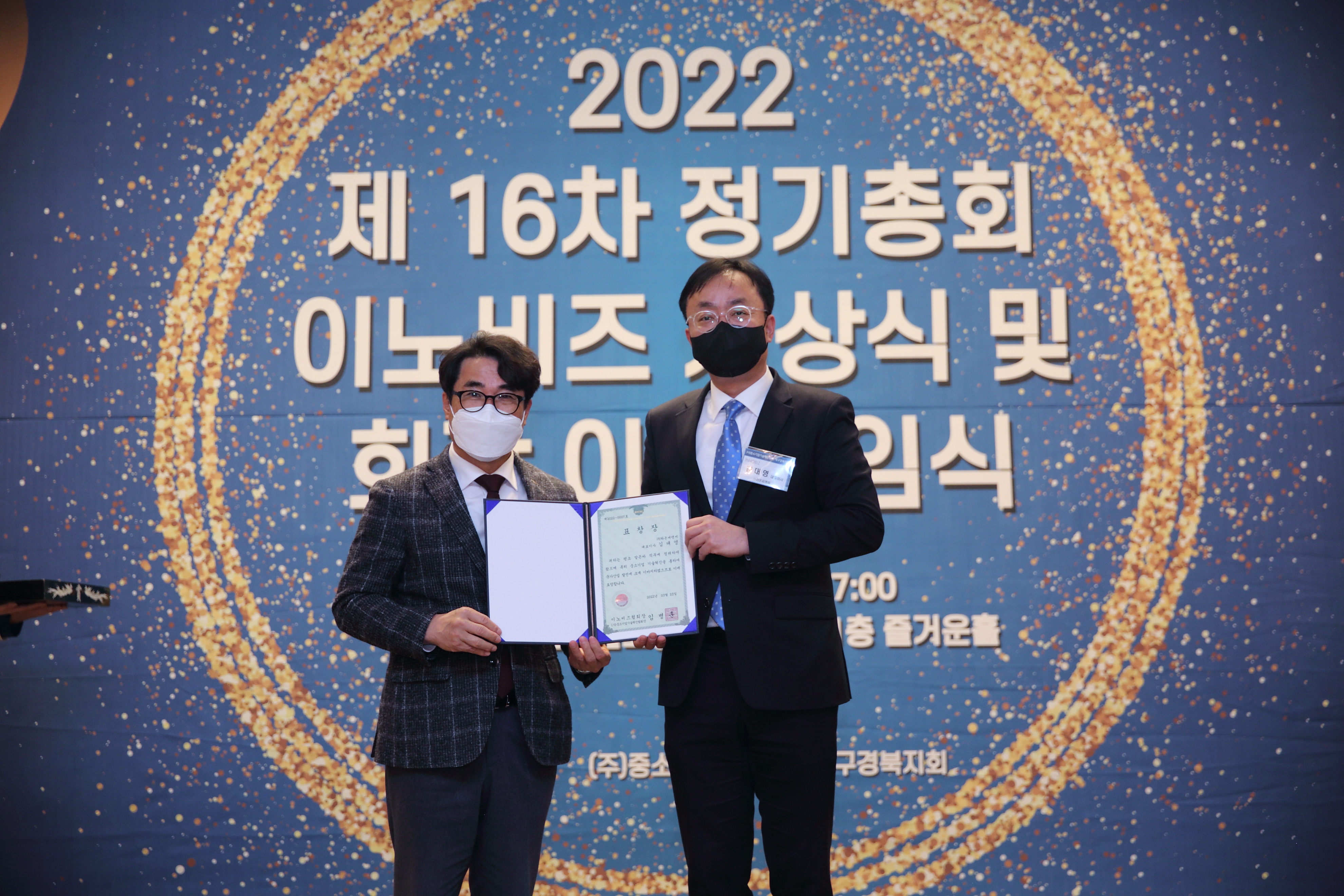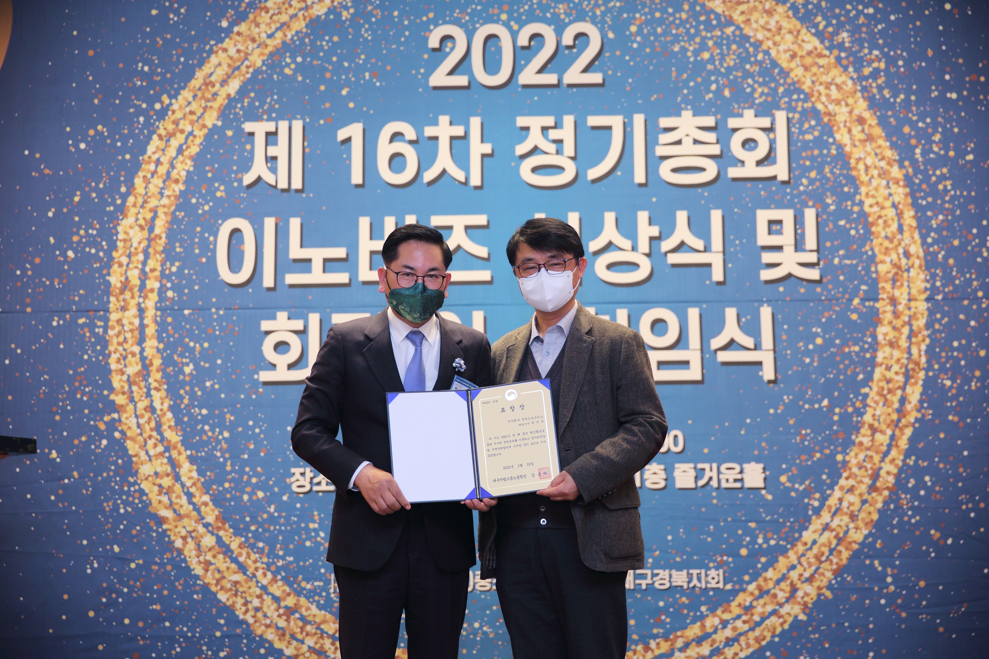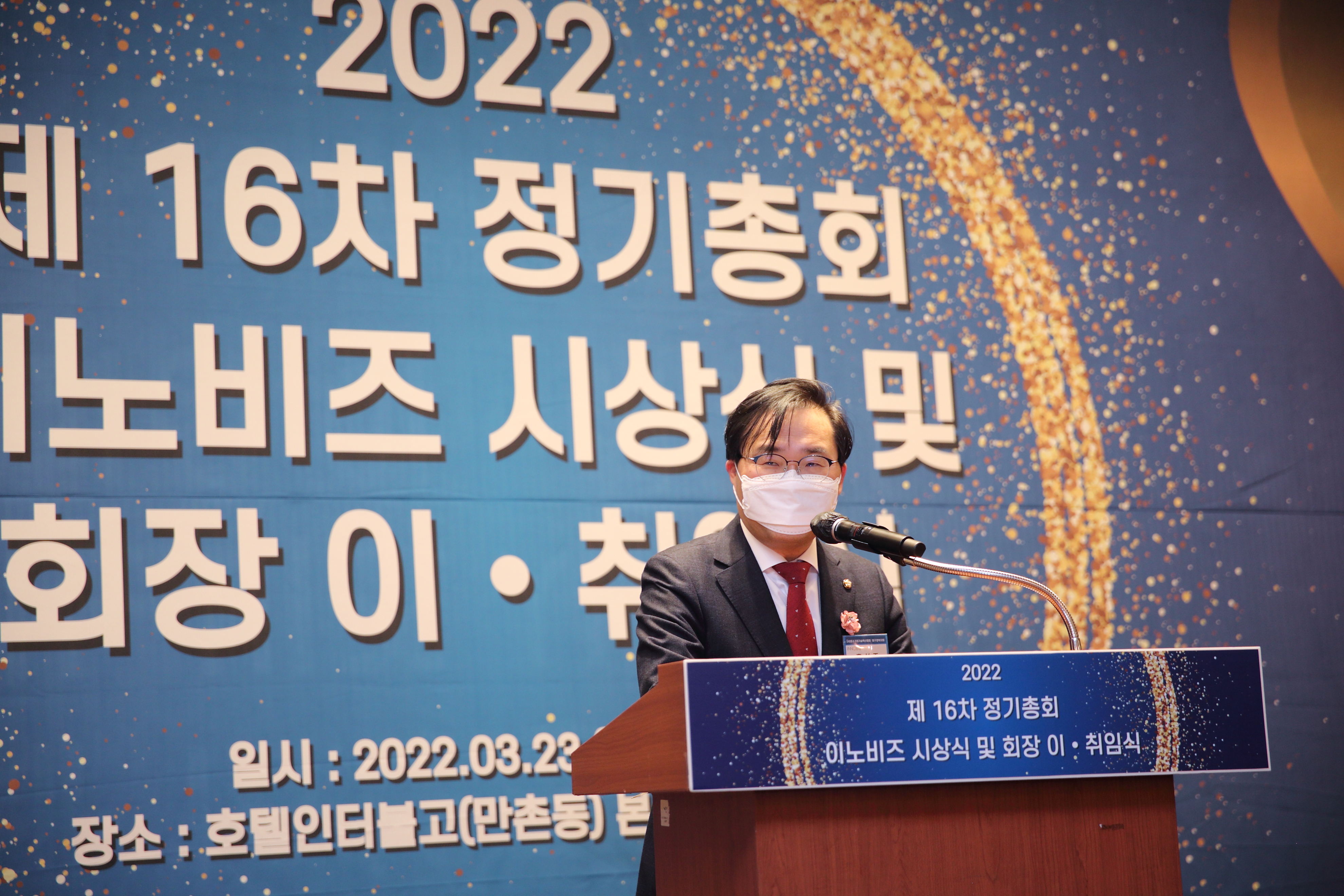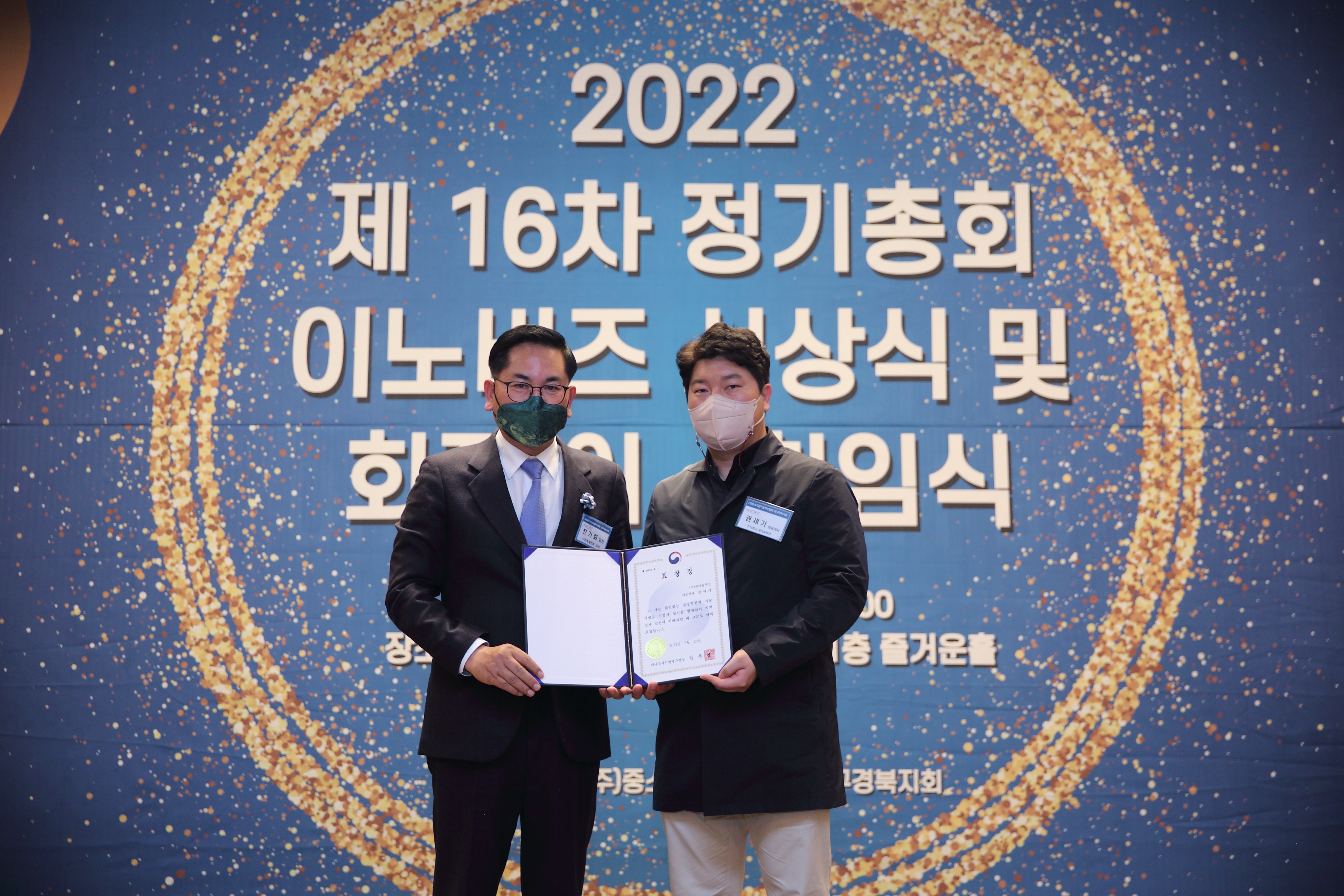 2022. 03. 23.(수) 대구인터불고호텔 즐거운홀에서 이노비즈협회 대구경북지회 제16차 정기총회, 우수이노비즈기업 시상식 및 회장 이·취임식을 진행 하였습니다.