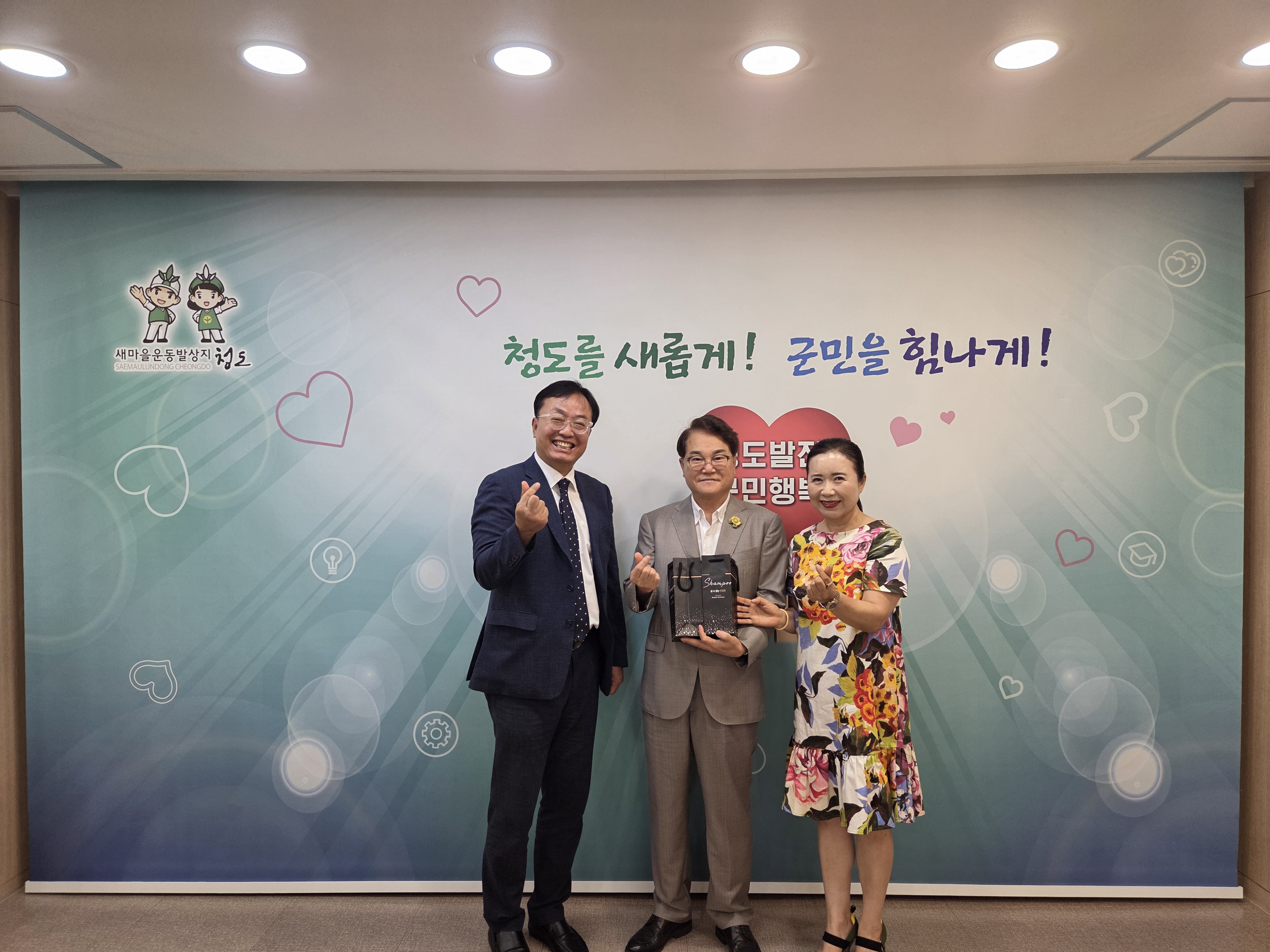 이후, 정효경 회장님과 김대영 대표님은 청도군청을 방문하여 김하수 청도군수님과 업무협의를 진행했습니다.