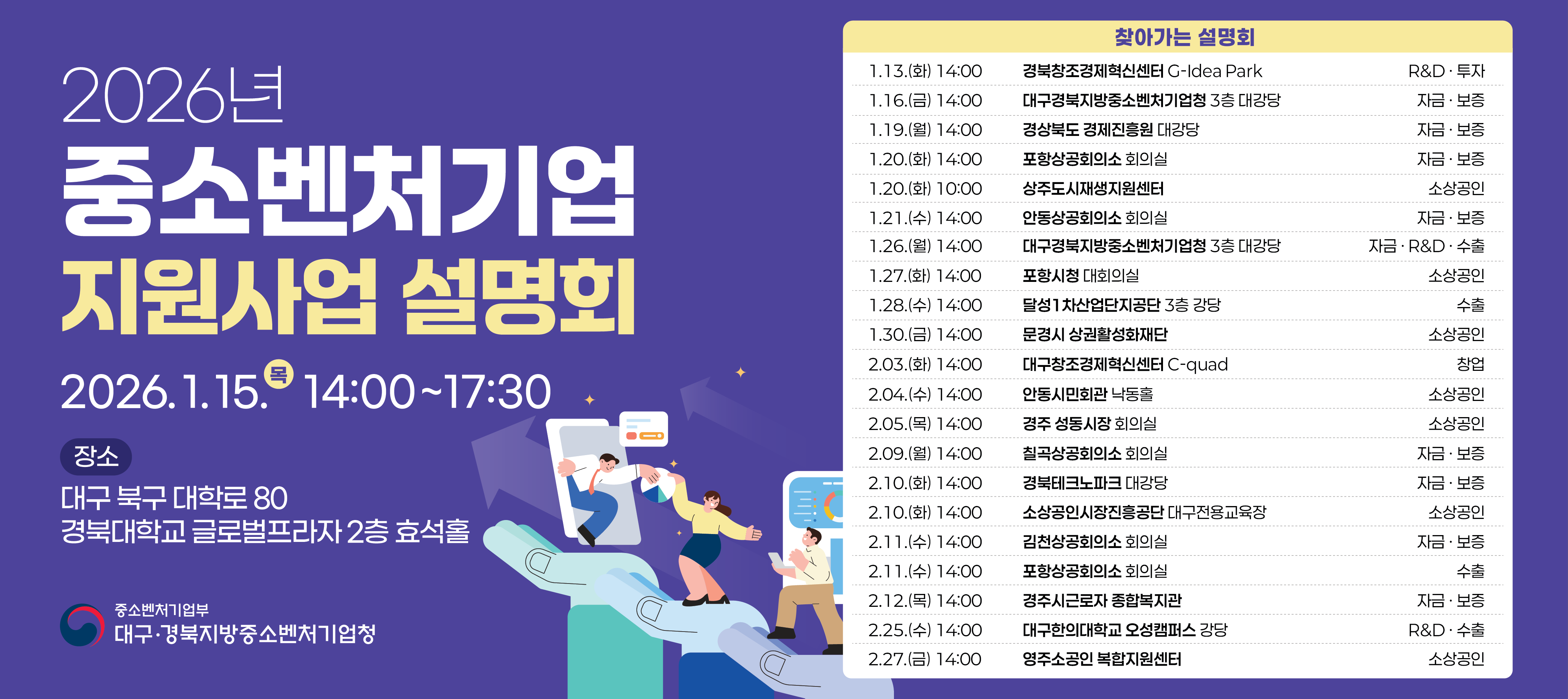 | 249 | [대구경북중기청] 2026년 중소벤처기업 지원사업 설명회 개최안내 | 2026.01.09 |   | 137 |