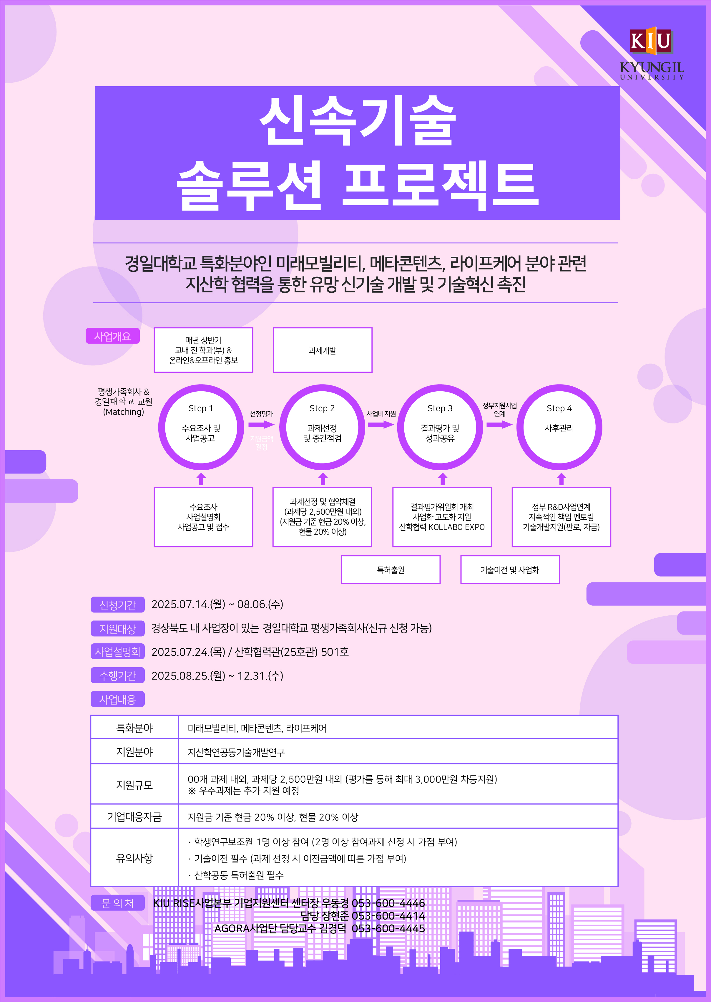 사업설명회 : 2025년 7월 24일(목) 14:00, 경일대학교 산학협력관 501호