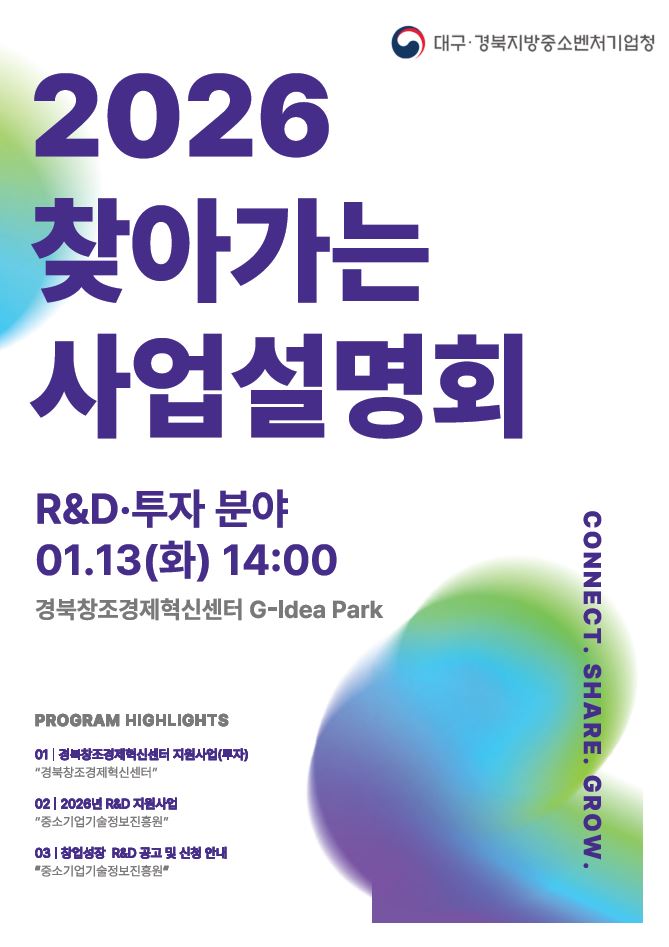 [대경중기청] 2026년 찾아가는 사업설명회(R&D, 투자 분야) 개최 안내