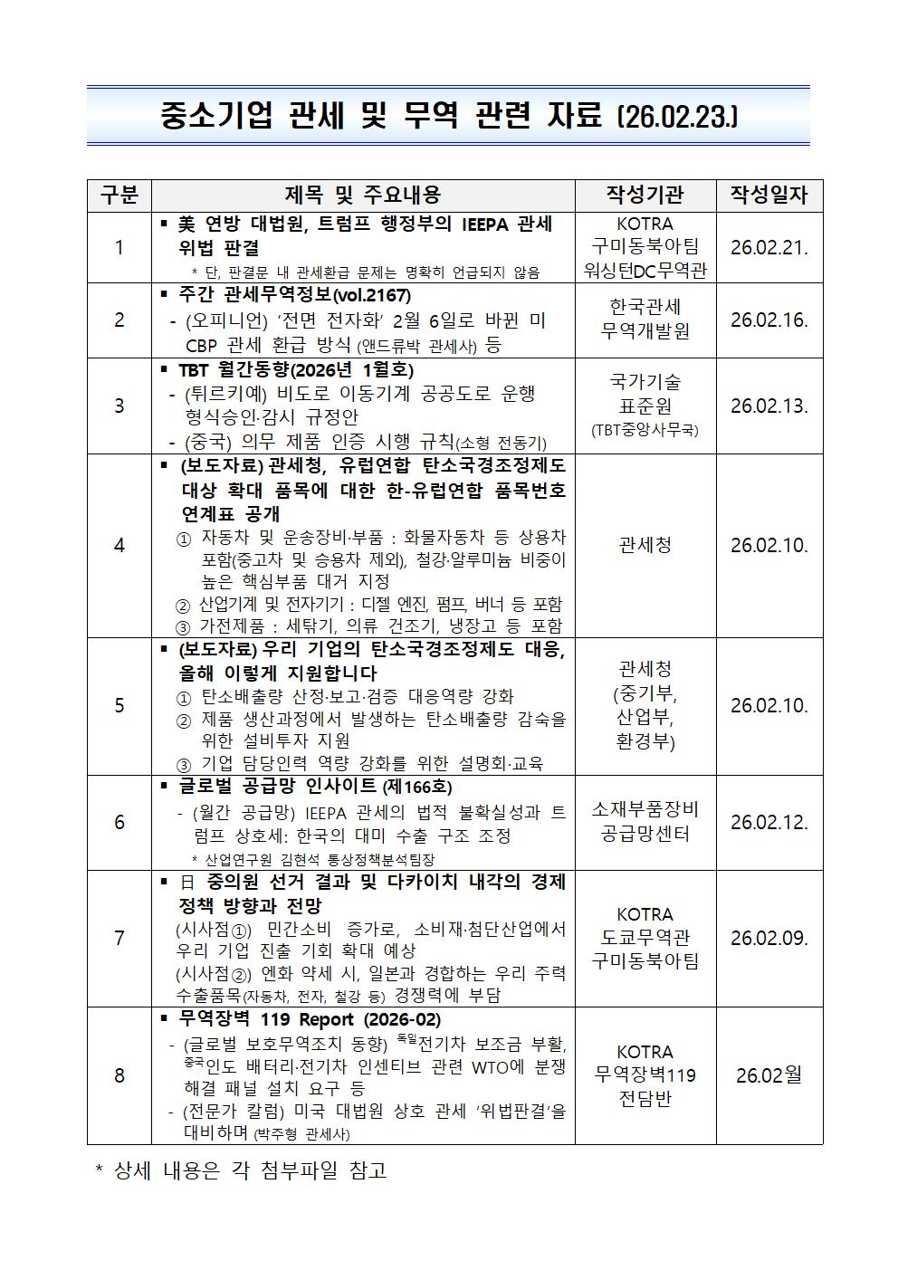 중소기업 관세 및 무역관련자료(26.02.23)