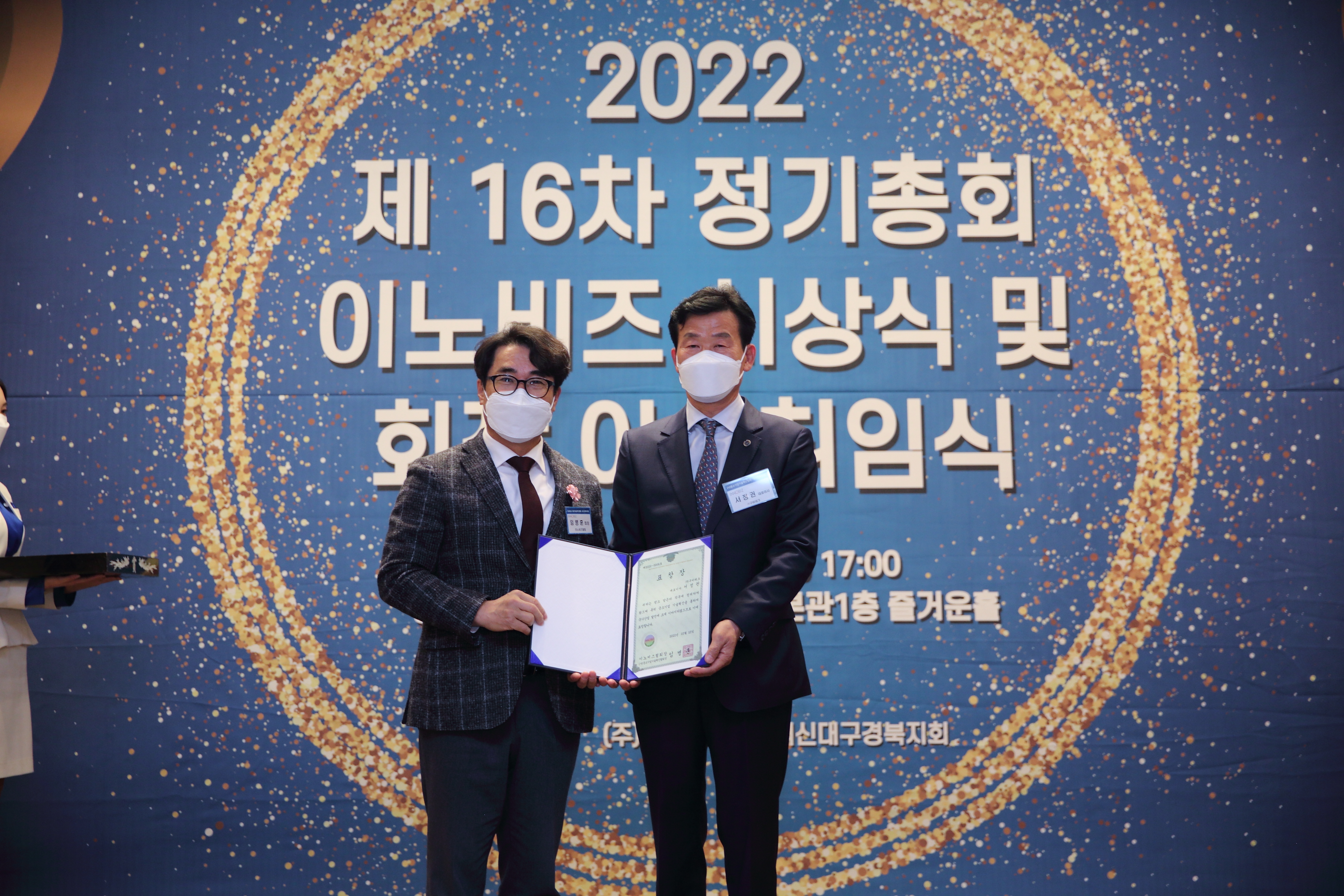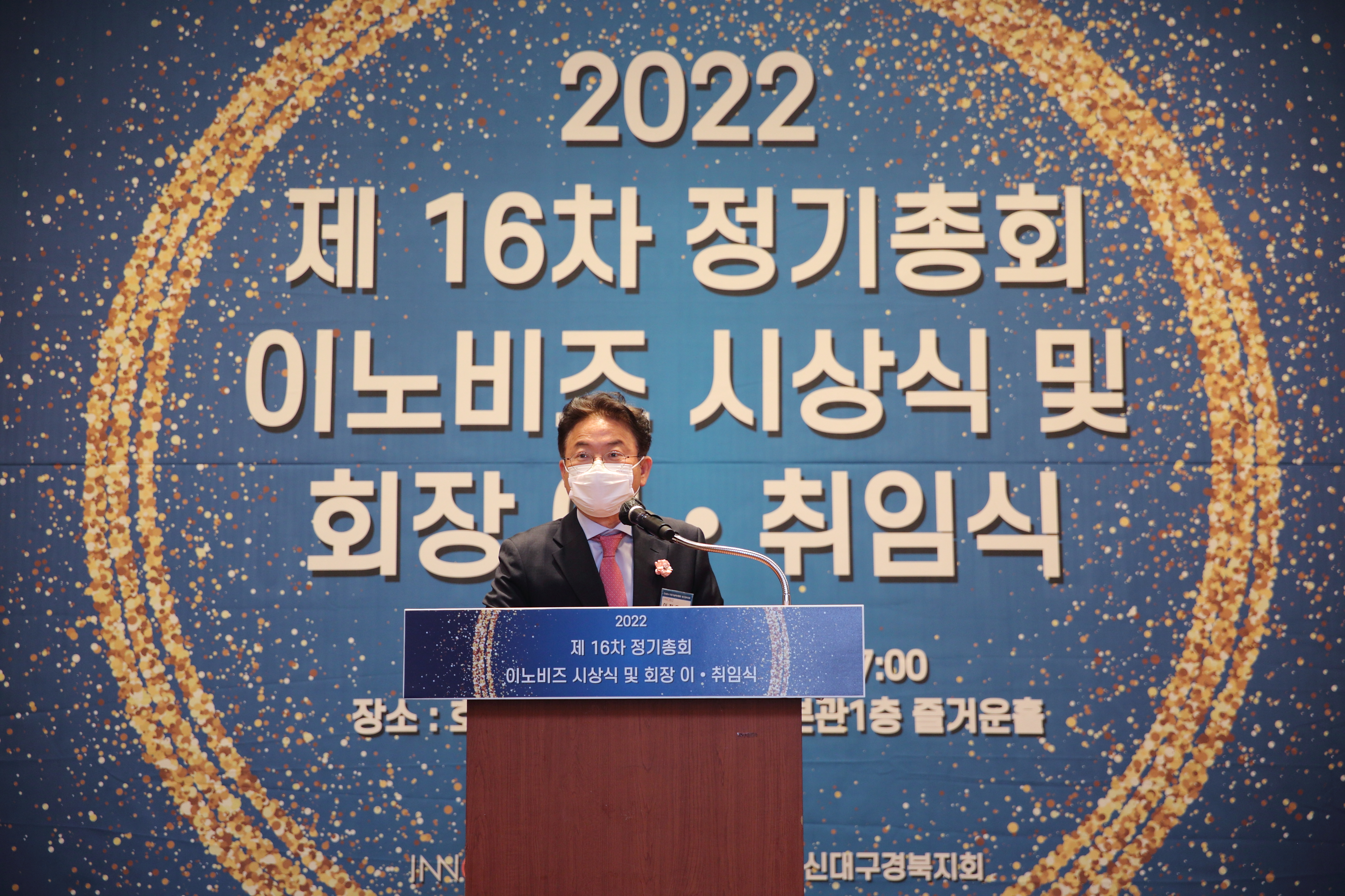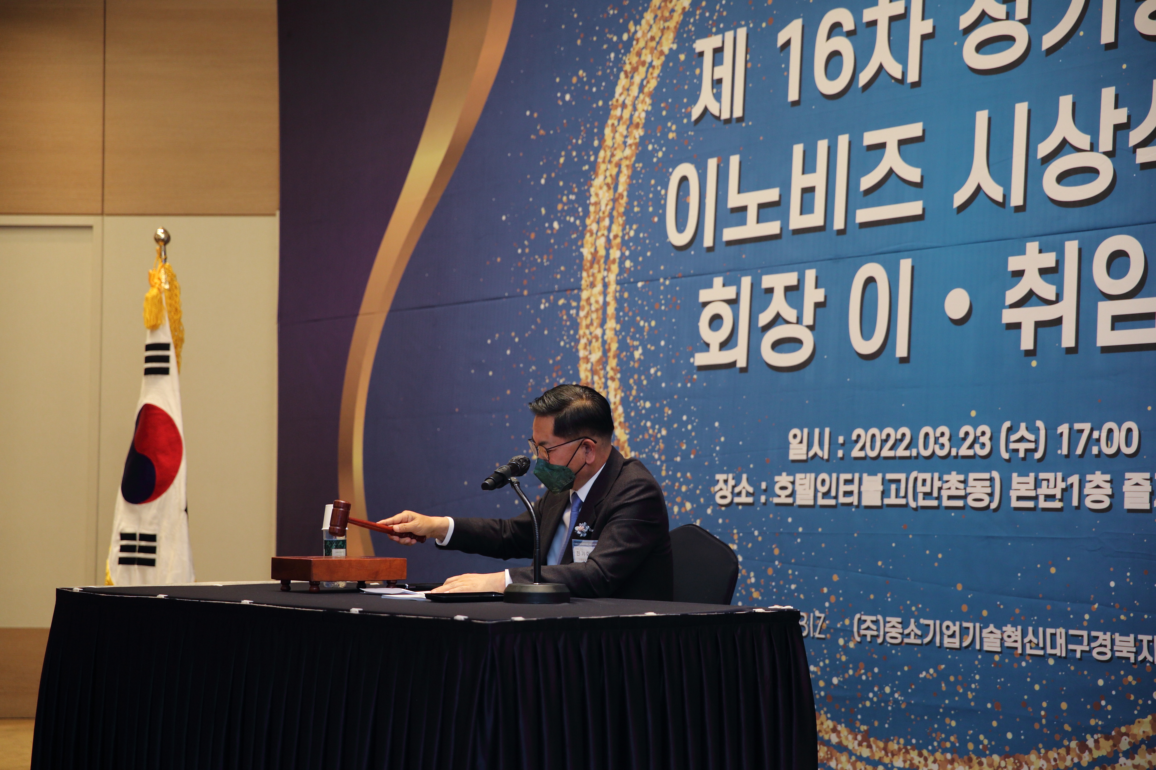 2022. 03. 23.(수) 대구인터불고호텔 즐거운홀에서 이노비즈협회 대구경북지회 제16차 정기총회, 우수이노비즈기업 시상식 및 회장 이·취임식을 진행 하였습니다.