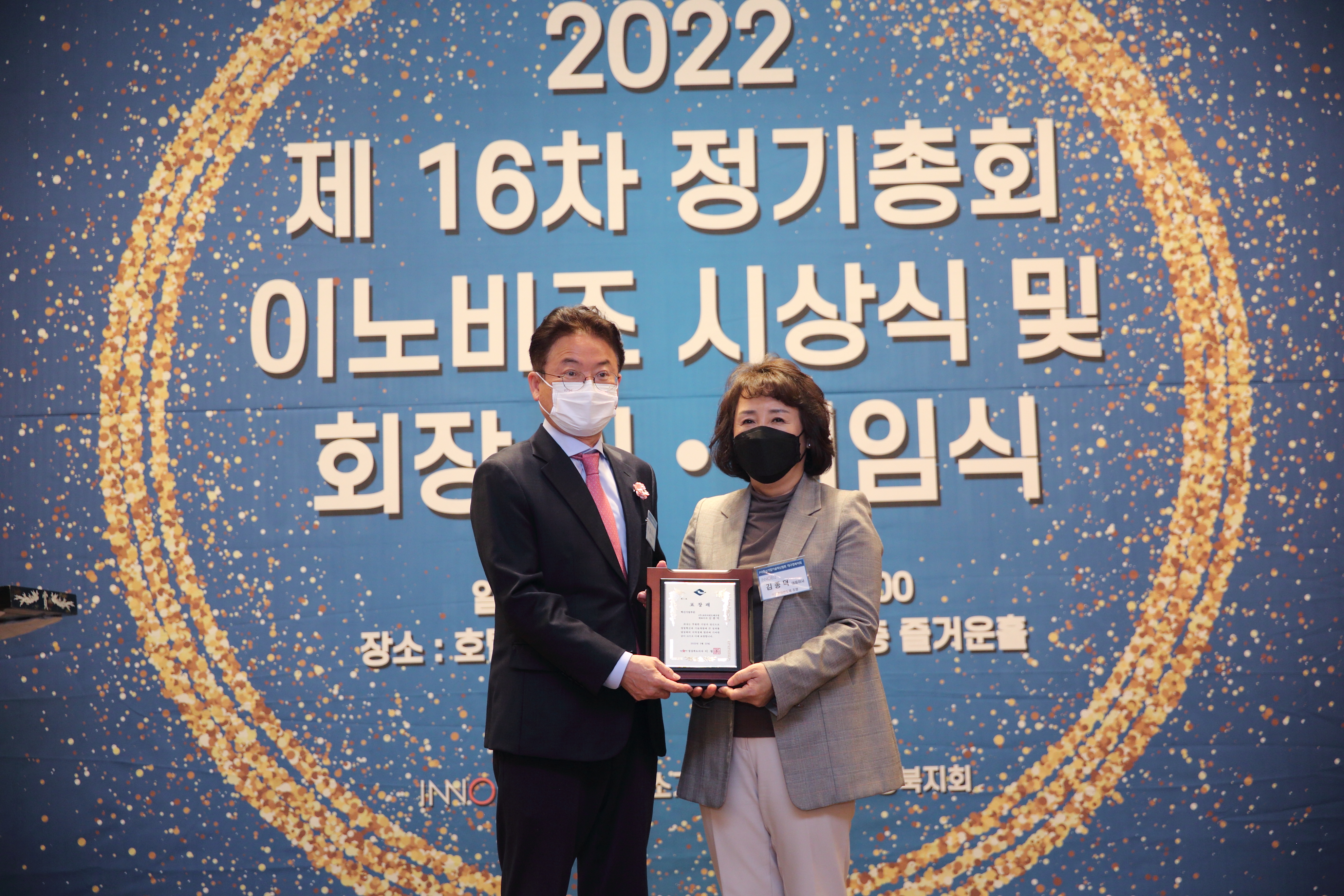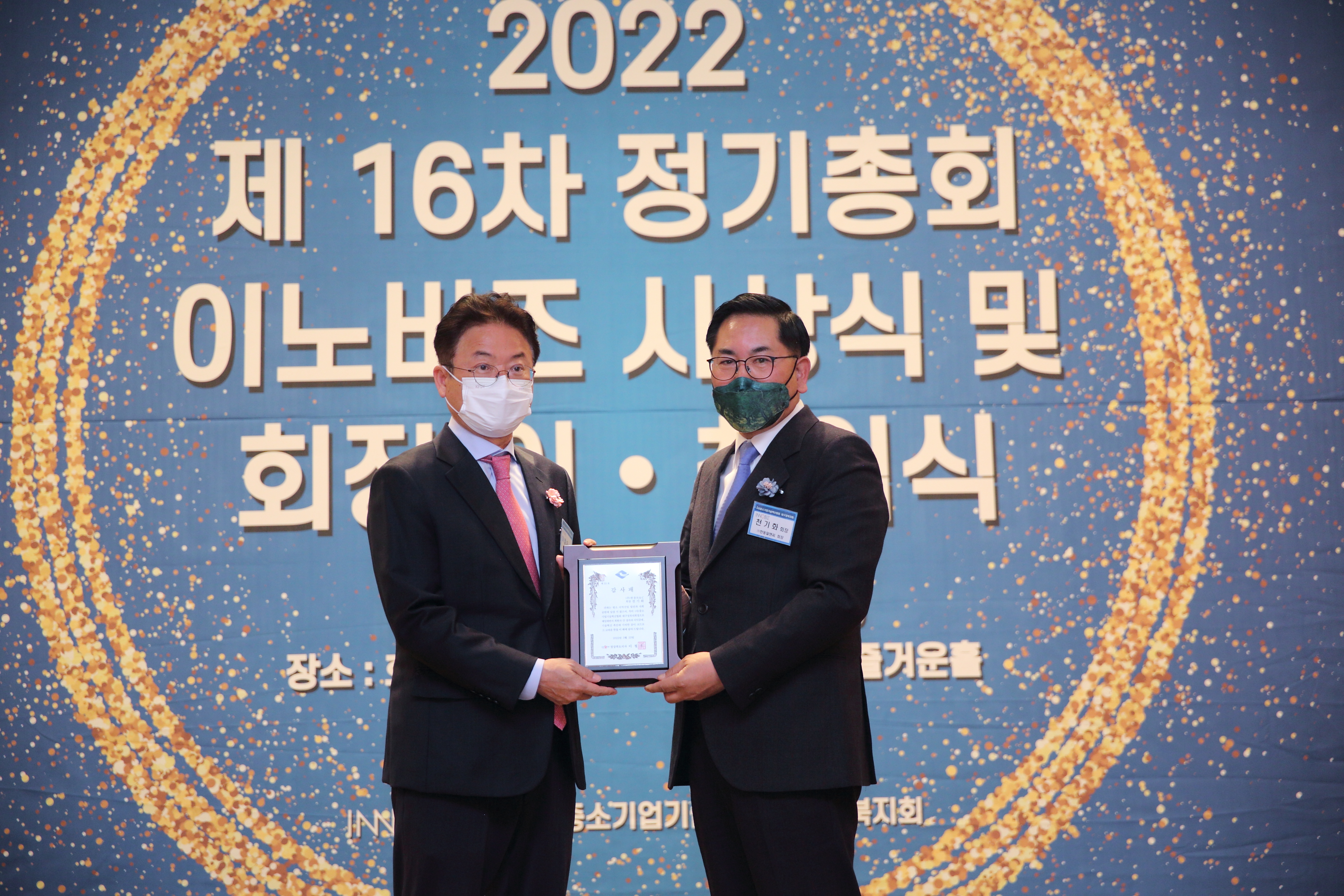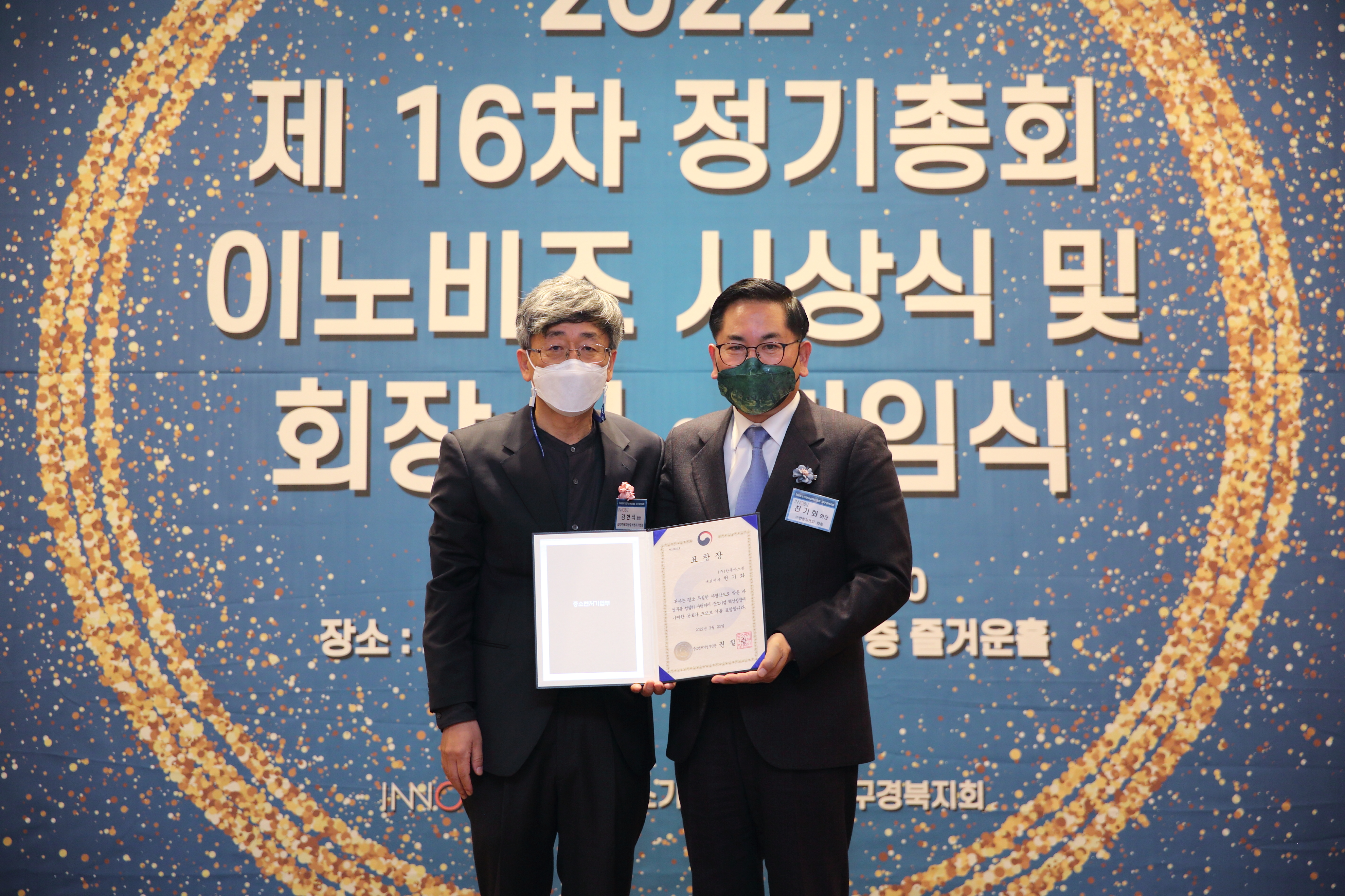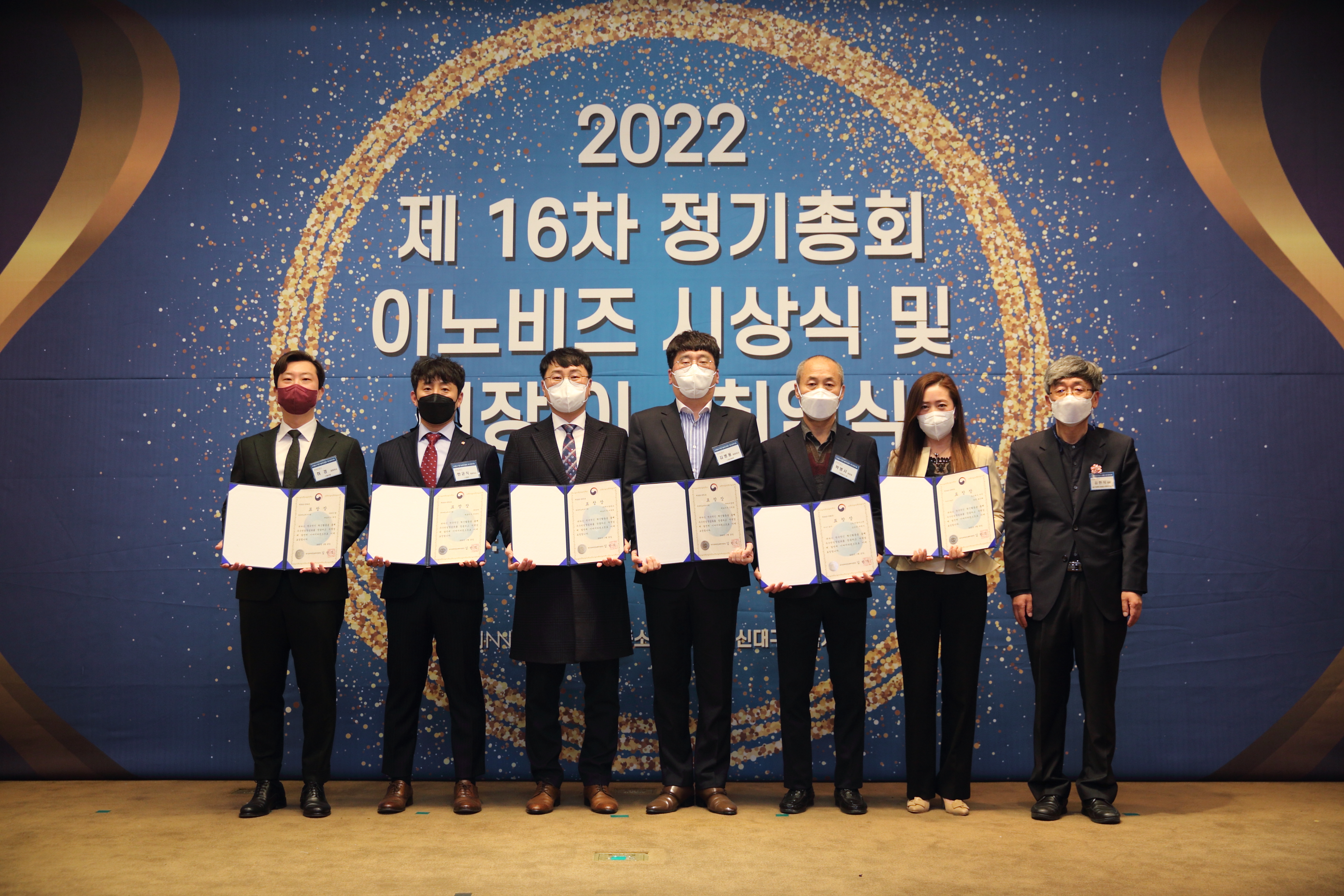 2022. 03. 23.(수) 대구인터불고호텔 즐거운홀에서 이노비즈협회 대구경북지회 제16차 정기총회, 우수이노비즈기업 시상식 및 회장 이·취임식을 진행 하였습니다.