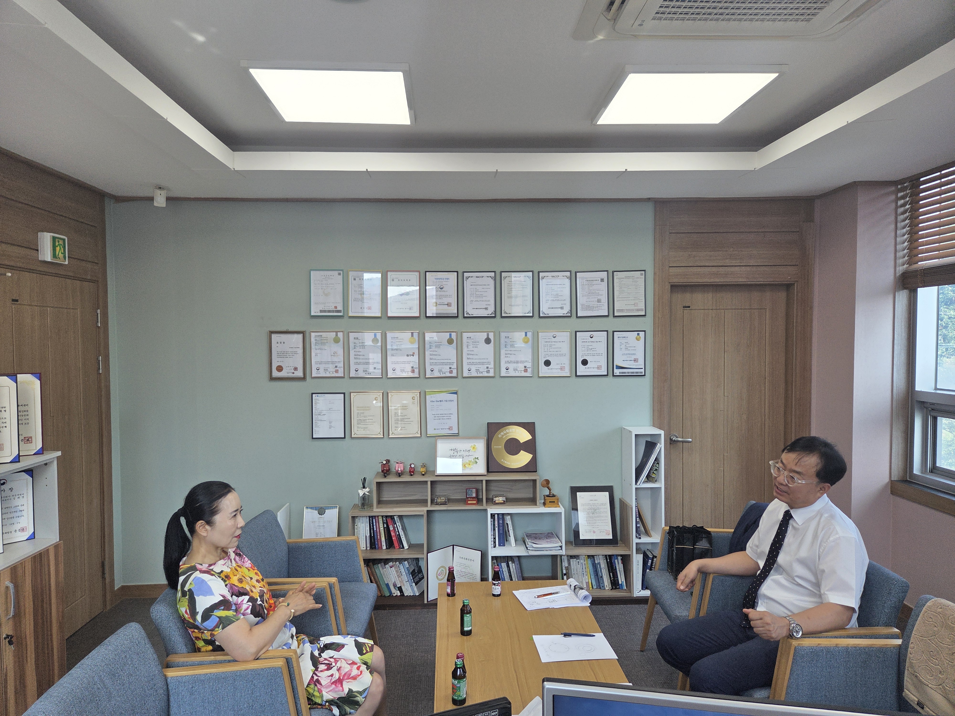 이후, 정효경 회장님과 김대영 대표님은 청도군청을 방문하여 김하수 청도군수님과 업무협의를 진행했습니다.