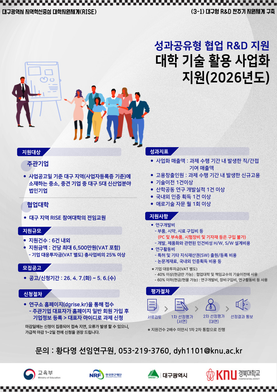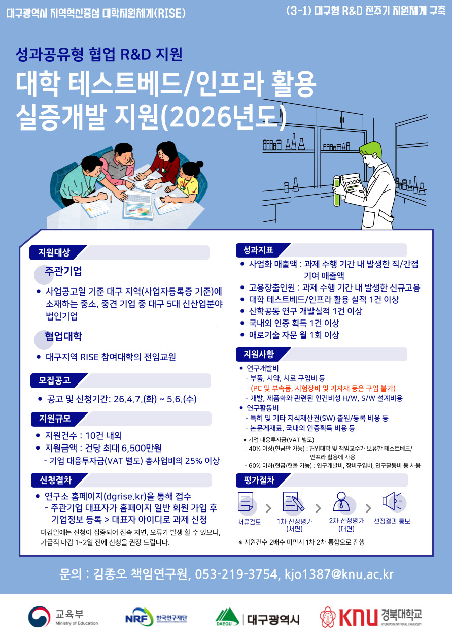 | 268 | [경북대학교]산업혁신 선도형 산학공동 기술개발 지원 | 2026.04.14 |         | 3 |