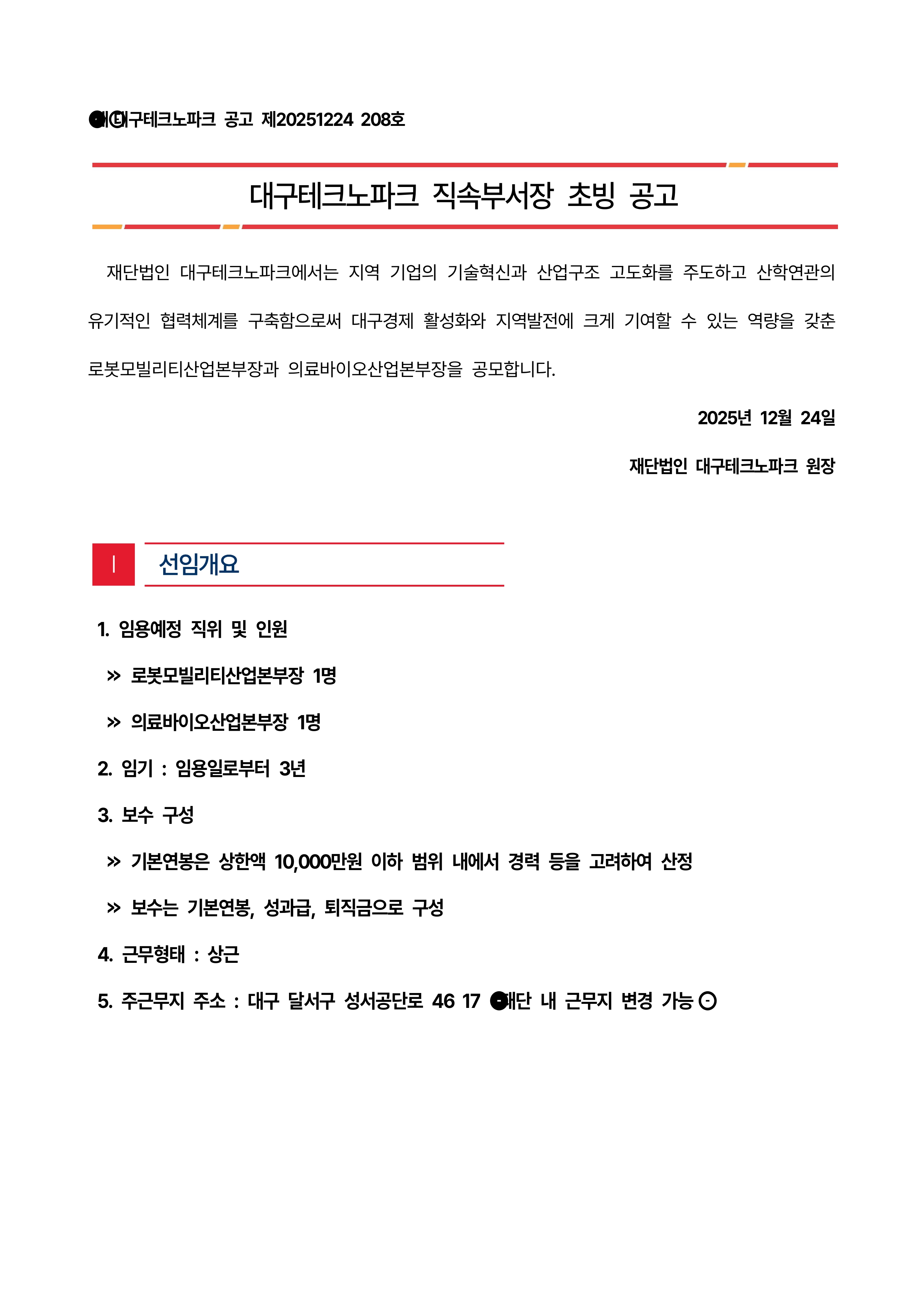 붙임 1. 대구TP 직속부서장(로봇모빌리티산업본부장,의료바이오산업본부장) 초빙 공고문.pdf